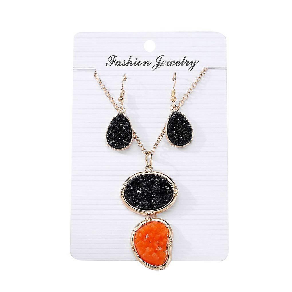 Retro Ethnic Resin Pendant Women Necklace Geometric Drop Earrings Set Gift