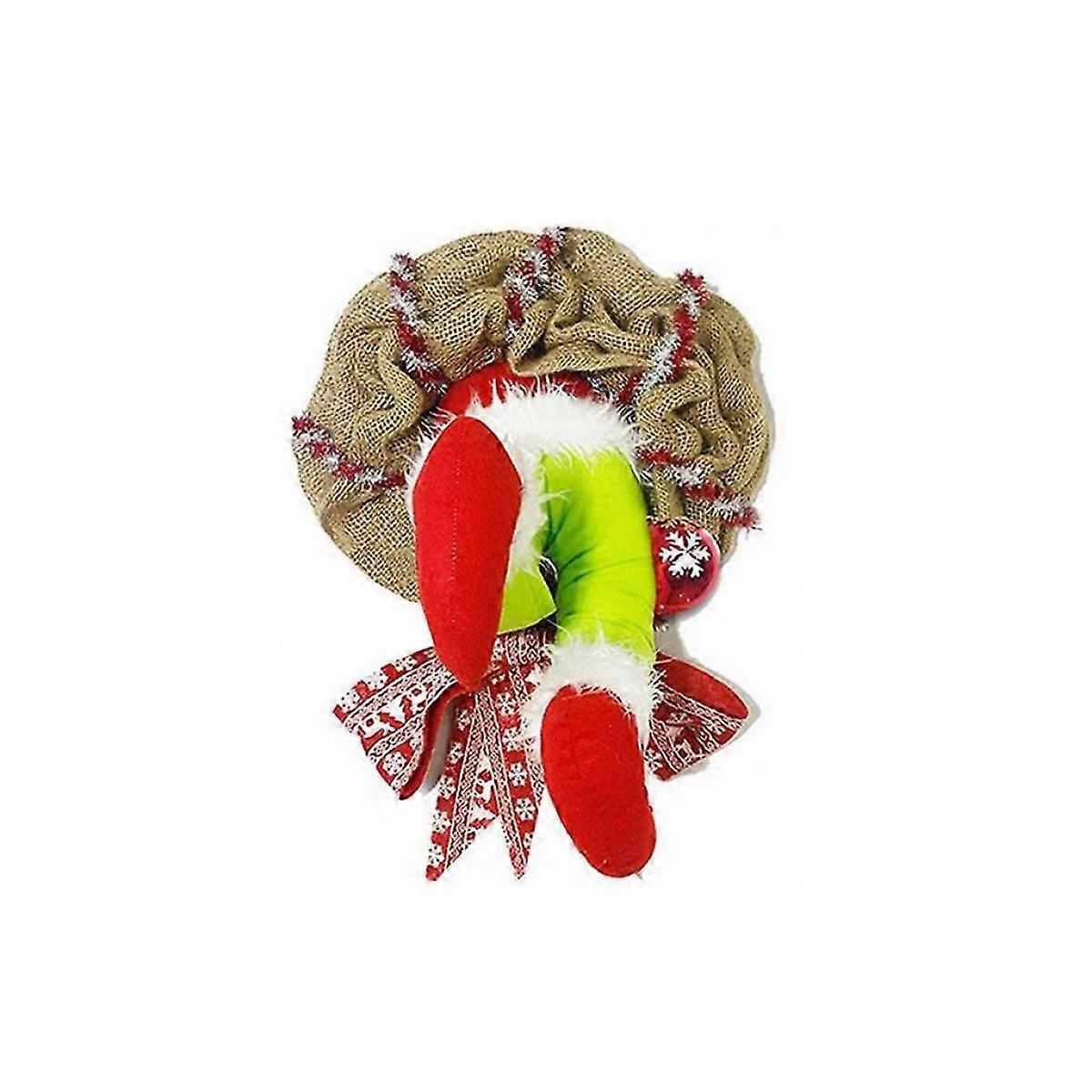 Funny Christmas Thief Leg Wreath Burlap Stealer Design Front Door Hanging Garland Hoop Xmas Tree Wall Ornament Decor Large