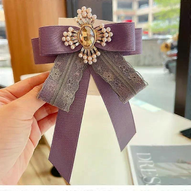 Korean Pink Fabric Lace Bow Tie Brooches for Women Cross Pearl Crystal Shirt Collar Pins Fashion Brooch Wedding Party Jewelry