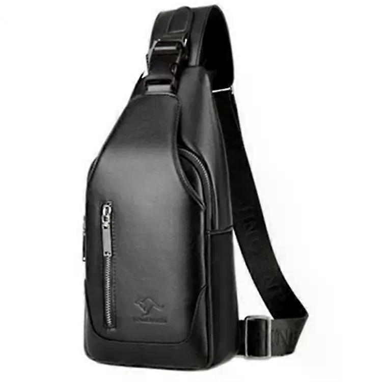 Business Casual Men Chest Bag USB Port Multi-Pocket PU Stitched Luster Zipper Shoulder Bag for Commute Shopping Storage Bag