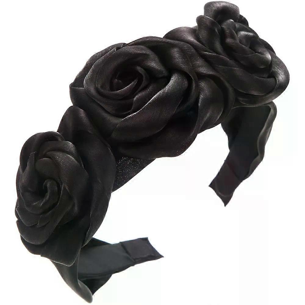 European and American New Handmade Rose Hair Hoops Glossy Veil Wide Edge Pressed Hair Headbands Fairy Party Hair Accessories
