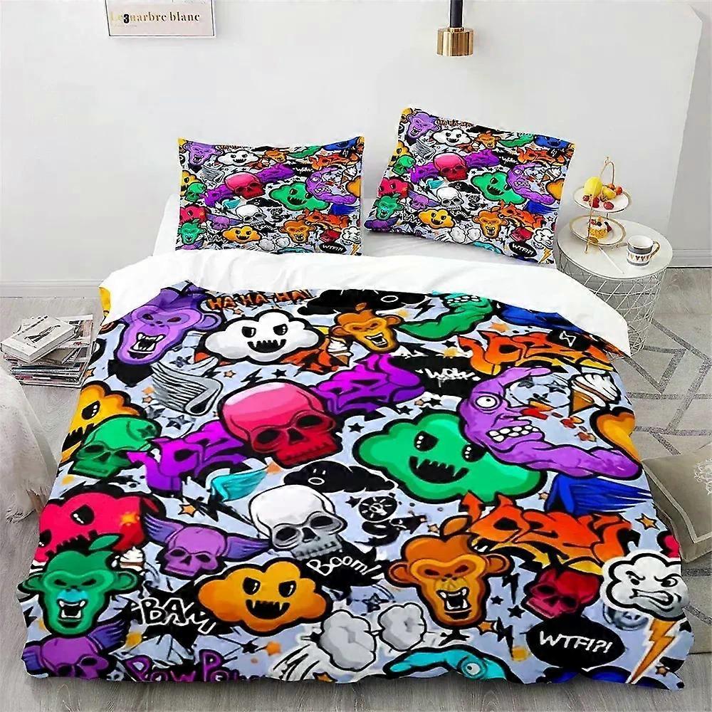(yy-623) Modern Duvet Cover Set, Teenager Style Image Street Wall Graffiti Graphic Colorful Design Artwork Print,Hip Hop Bedding Set King