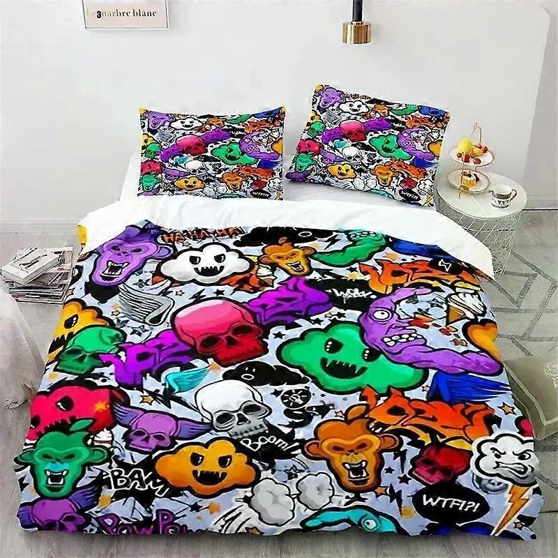 (yy-598) Graffiti Hip Hop Modern Street Art Bedding Set Boys Girls Twin Queen Size Duvet Cover Pillowcase Bed Kids Adult
