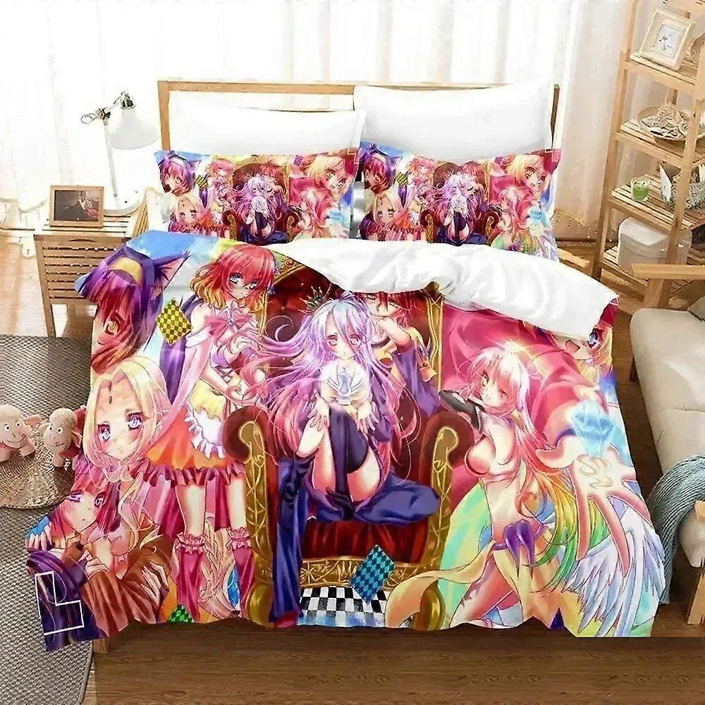 klsnx39 Anime No Game No Life Bedding Set Duvet Cover Bed Set Quilt Cover Pillowcase Comforter king Queen Size Boys Adult Bedding Set