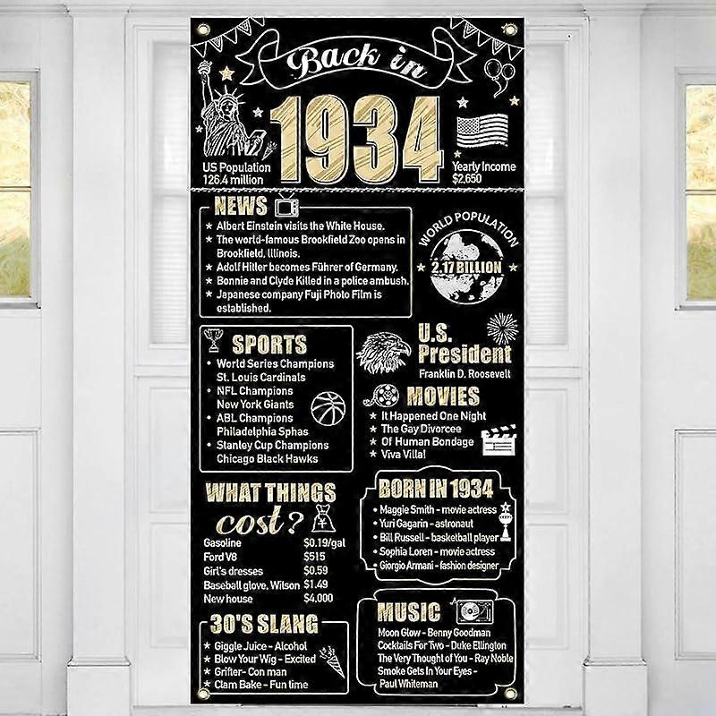 90th Birthday Decorations Back in 1934 Door Banner for Men Women, Black Gold Happy 90 Birthday Door Cover Party Supplies