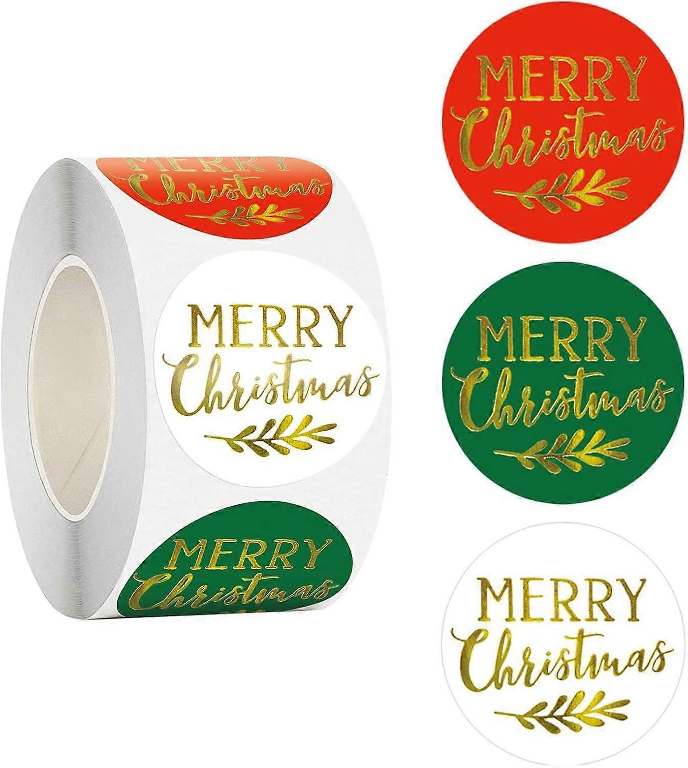 1 Roll of 500 Merry Christmas Stickers Round Seals Labels for Gift