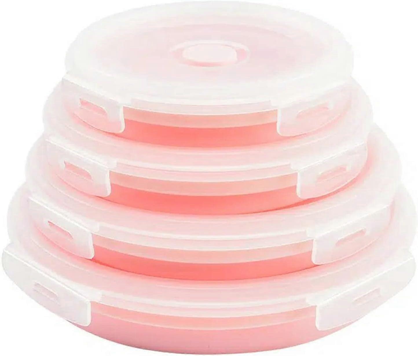 Set of 4 Collapsible Silicone Food Containers with Airtight Lids, Microwave & Dishwasher Safe - Pink