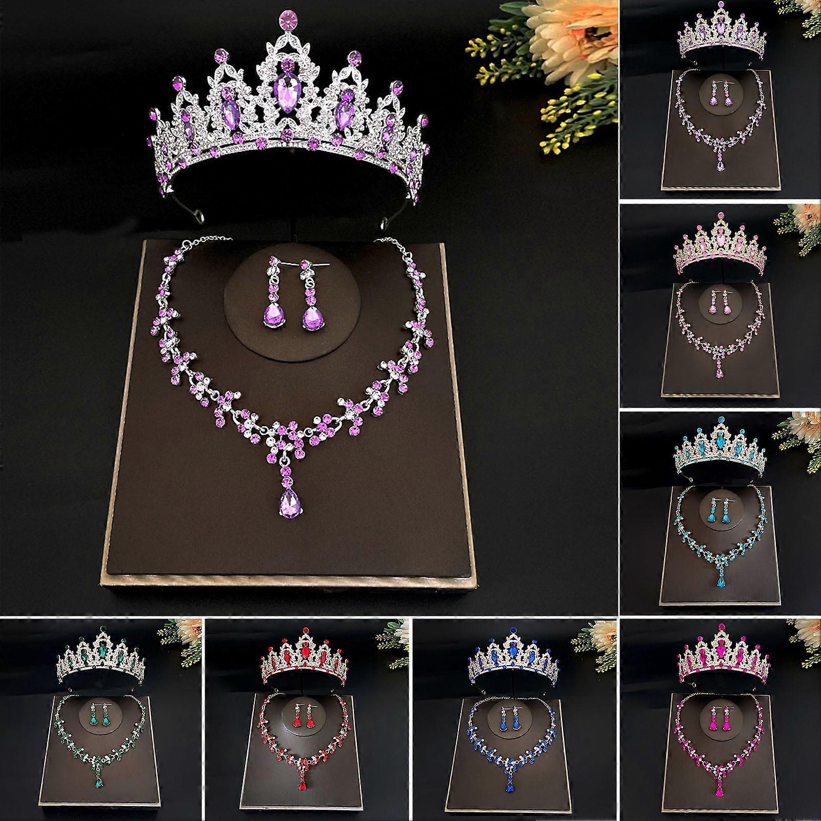 Description: Featuring a geometric shape, faux crystal and electroplating process design, this jewelry set is unique, stylish and eye-catching, which can be paired with your various outfits, jewelry, handbag and hair accessories. This jewelry set has exquisite workmanship and bright colors, is not easy to deformation and fading, not easy to fall off, sturdy and durable, and is an excellent choice for wedding accessories. It is constructed of alloy material. The length of this necklace is 45cm. It is perfect for party, travel, ceremony, wedding, festival and so on. Item Name: Jewelry Sets Material: Alloy Features: Faux Crystal, Electroplating, Exaggerated Size Details: Necklace Length: 45cm/17.72" (Approx.) Notes: Due to the light and screen setting difference, the item's color may be slightly different from the pictures. Please allow slight dimension difference due to different manual measurement. Package Includes: 1 x Wedding Crown 1 x Necklace 1 Pair of Earrings Featuring a geometric shape, faux crystal and electroplating process design, this jewelry set is unique, stylish and eye-catching, which can be paired with your various outfits, jewelry, handbag and hair accessories. This jewelry set has exquisite workmanship and bright colors, is not easy to deformation and fading, not easy to fall off, sturdy and durable, and is an excellent choice for wedding accessories. It is constructed of alloy material. The length of this necklace is 45cm. It is perfect for party, travel, ceremony, wedding, festival and so on.