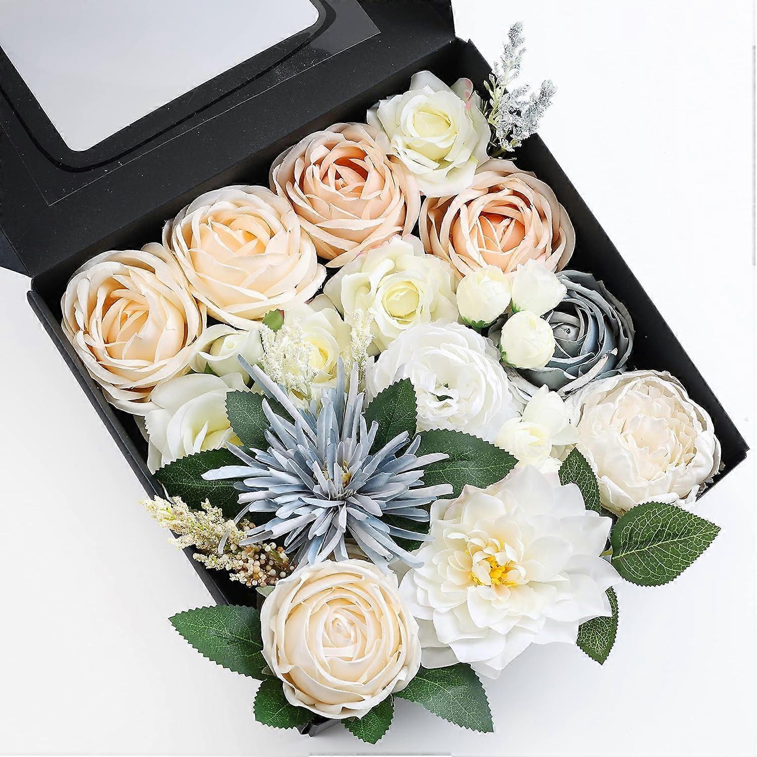 Artificial Rose & Dahlia Set, Silk Fake Peonies, DIY Wedding Bouquet, Centerpiece, Table Decor, Candle Holder, Baby Shower, Home Decor (Beige,
