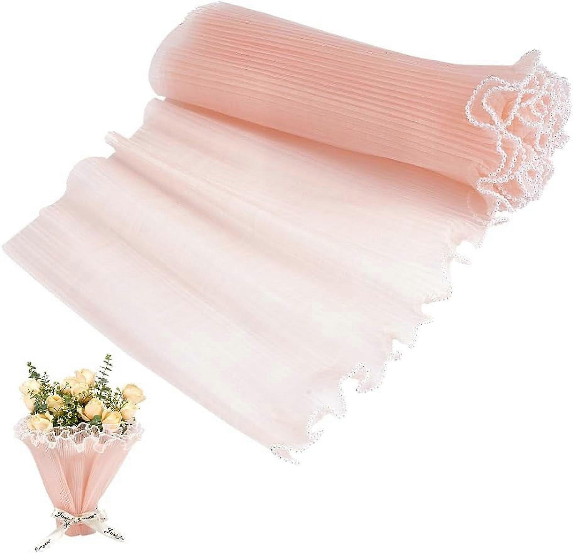 157x10.8Inch PeachPuff Flower Wrapping Paper, Pearl Edge Bouquet Floral Packaging, Mesh Wrinkled Wavy Net Yarn for Valentine Xmas Gift Packing