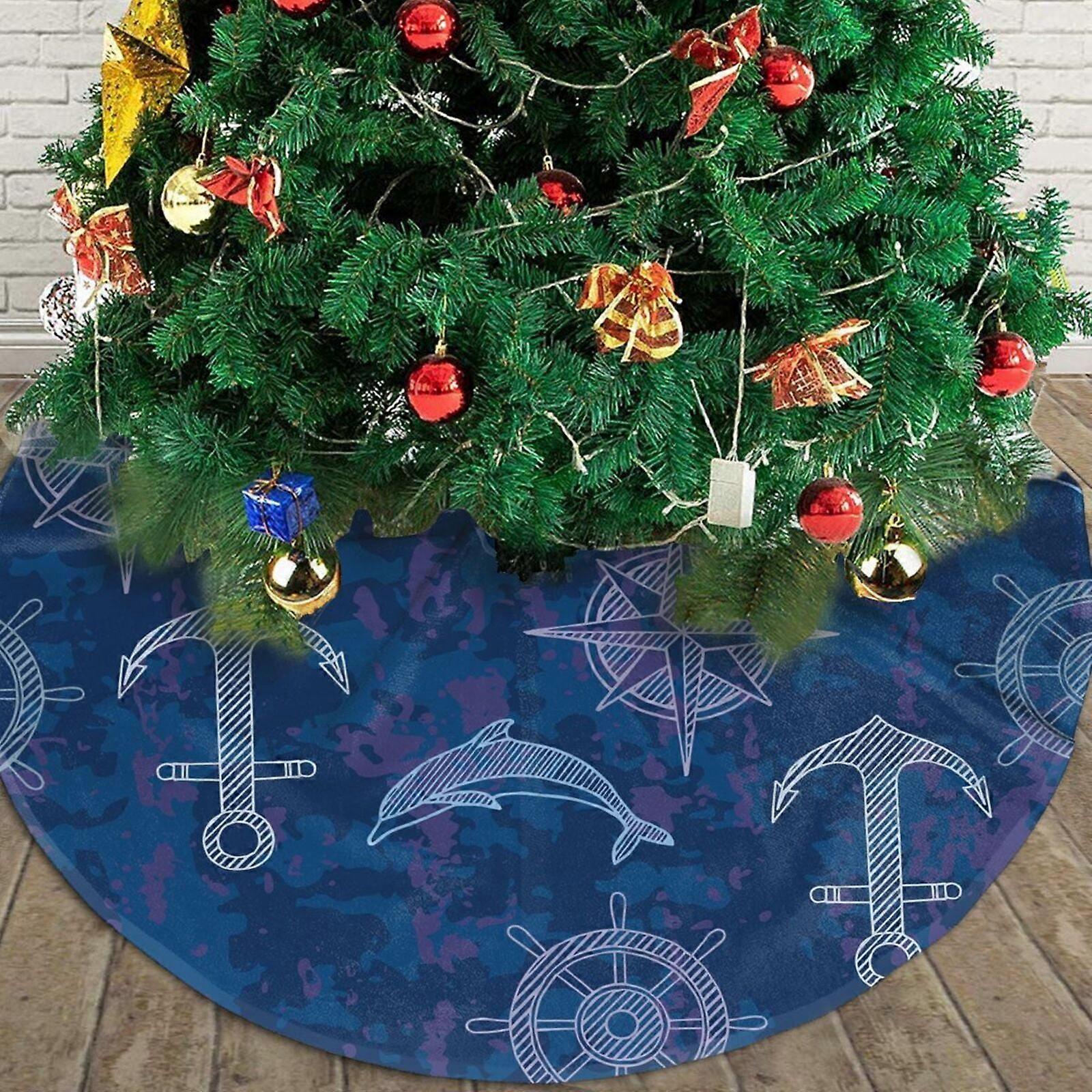 Christmas Tree Skirt, 36" Sailing Anchors Dolphins And Compass For Christmas Decorations&Ornaments