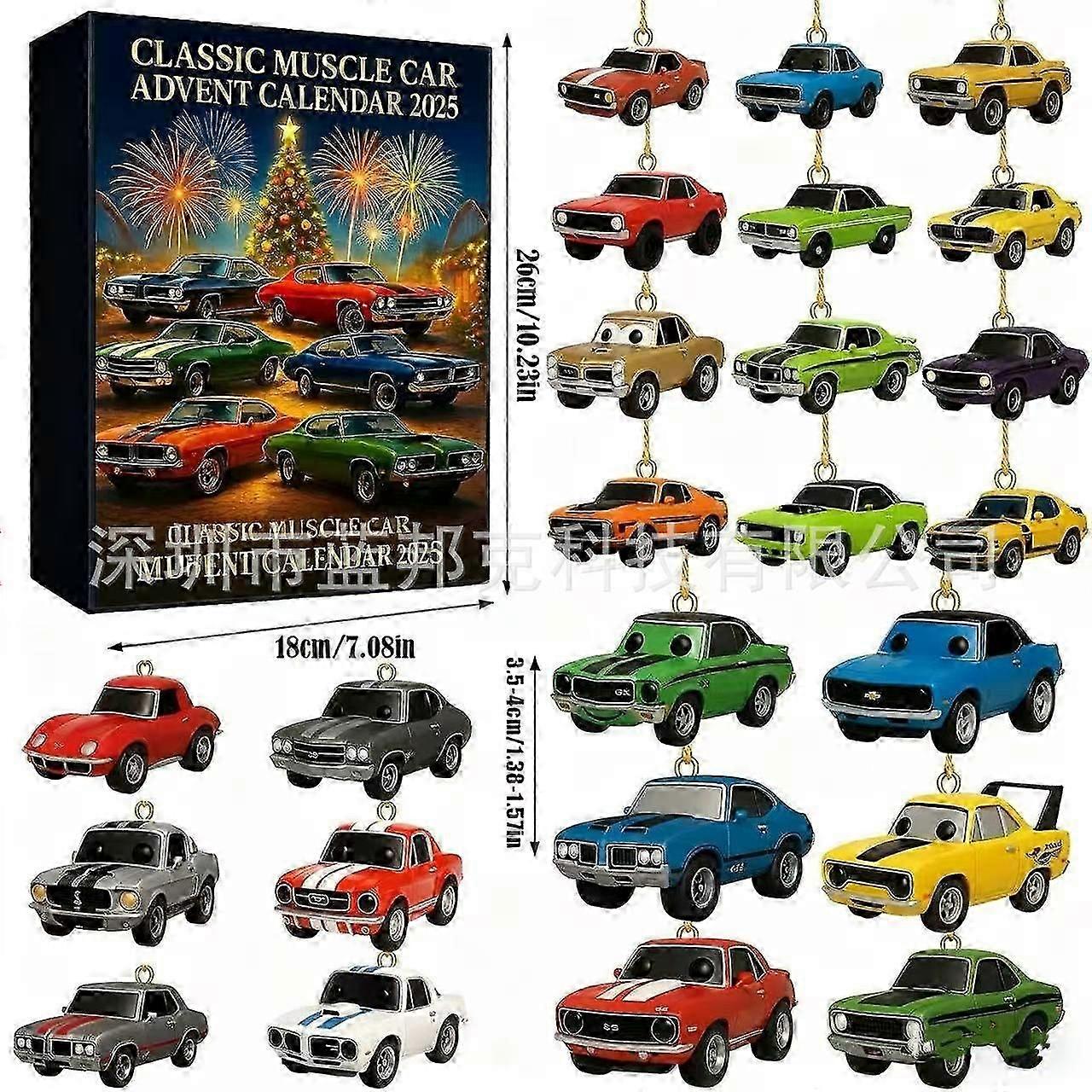 2025 Muscle Car Christmas Acrylic Pendant Advent Calendar - Classic UK Holiday Countdown Decor