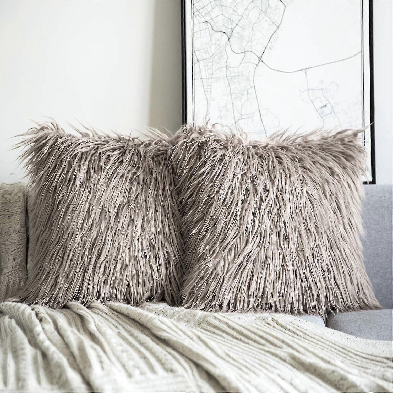 Phantoscope Merino Style Faux Fur Series Decorative Throw Pillow Cover, 18" x 18", Beige, 2 Pack
