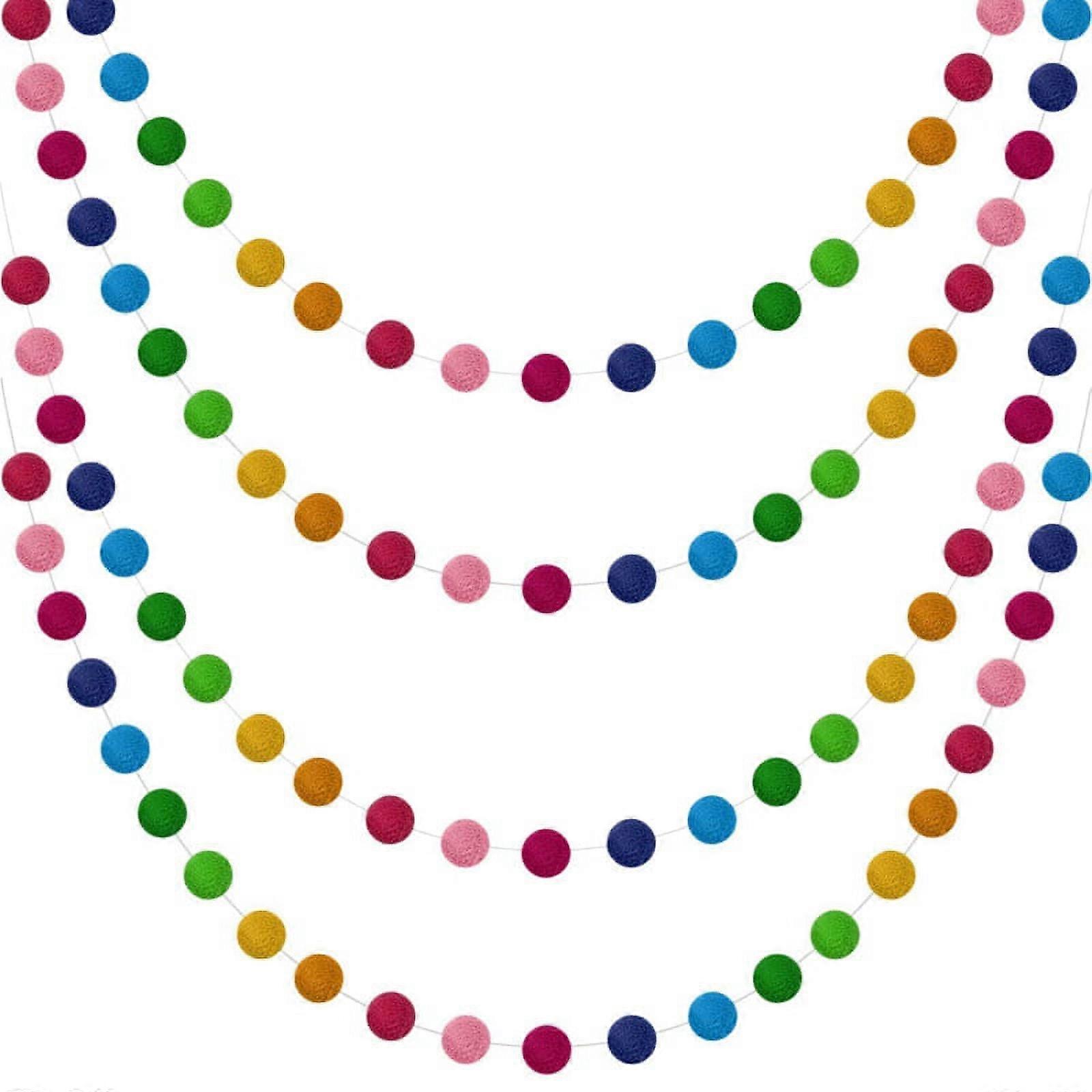 Garland Colorful Pom Pom Garland Handmade 28 Balls Felt Garlands for Wall Christmas Tree Decoration (4 Sets)