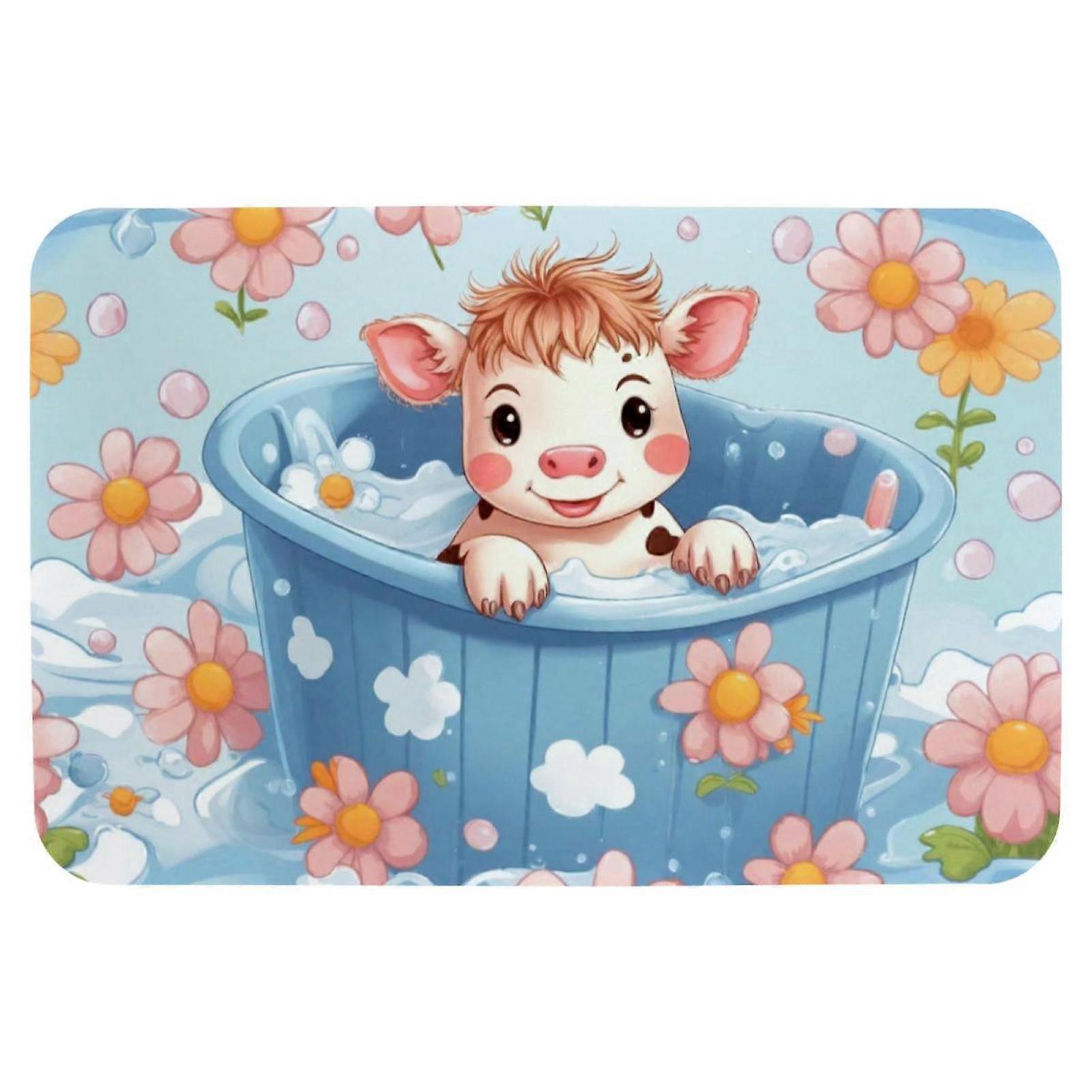 20x31in Flowers Baby Shower Cow Memory Foam Bath Mat, Machine Washable, Non-Slip, Quick Dry, Soft & Absorbent Rug for Floor