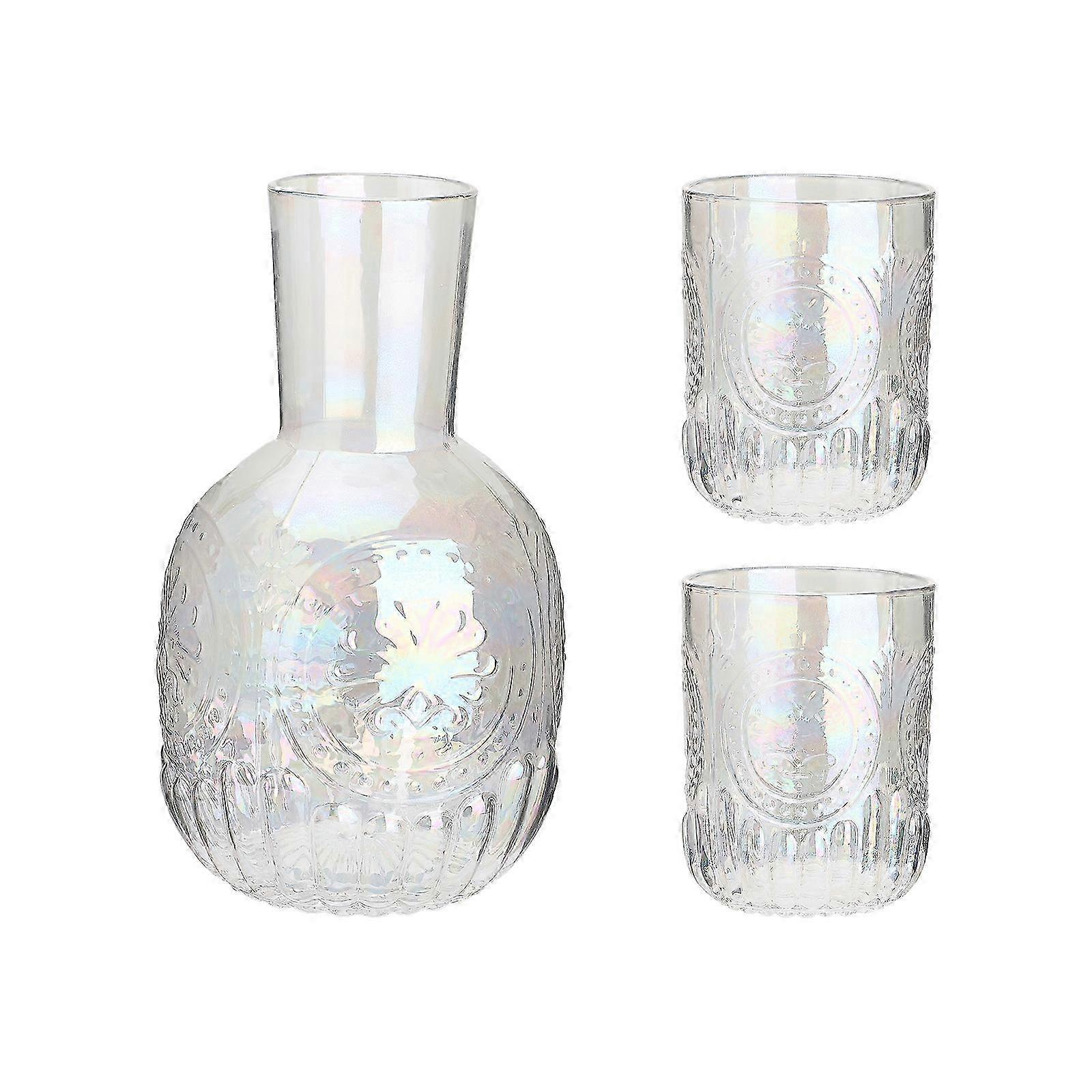 Vintage Bedside Water Carafe and Glass Set Thicked 44 oz Night Glass Water Pitcher Set with 2 Pcs 10 oz Cups for Bedroom Nightstand Office--Multicolor
