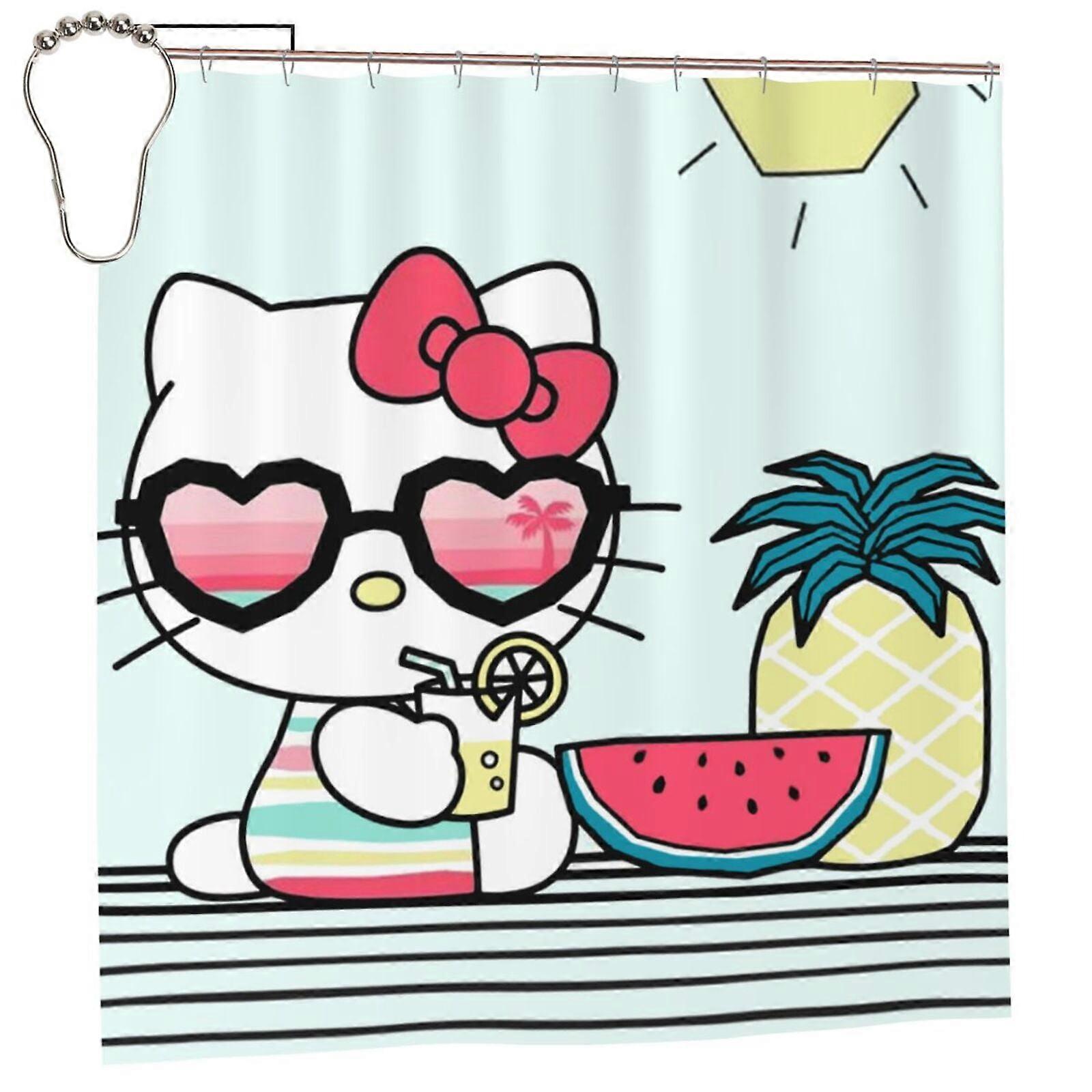 Hello Kitty Waterproof Bathroom Washable Cloth Shower Curtains With 12 Hooks, 72 "W X 72" L-Style 1