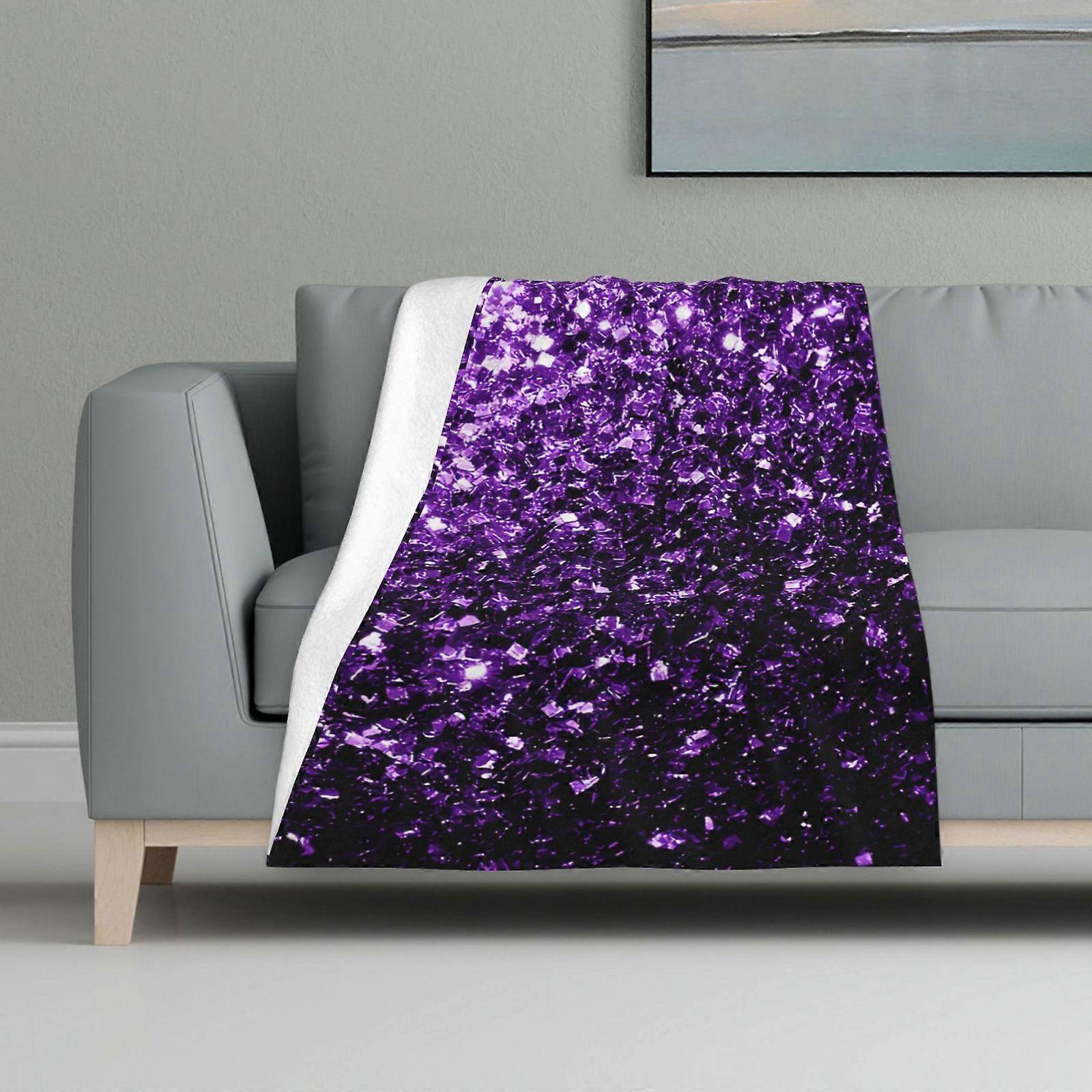 Blanket Multicolour Printed Blanket Super Soft Flannel Lightweight Fluffy Plush Bed Blanket Beautiful Dark Purple Glitter Sparkles