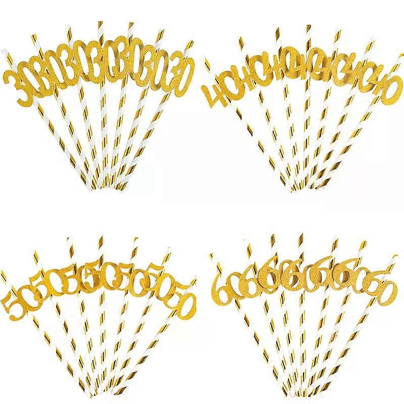 10pcs Adult Birthday Gold Striped Paper Straws 30th 40th 50th 60th Birthday Party Drinking Straws Adult 30th Birthday Supplies