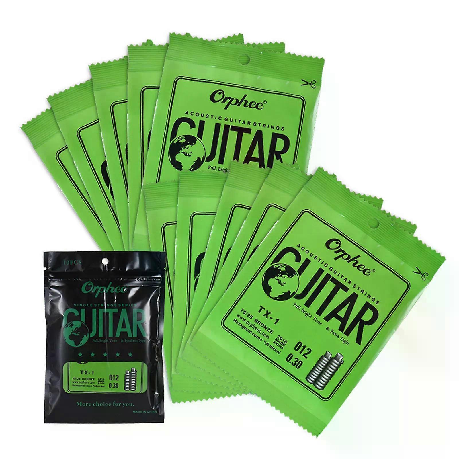 Orphee TX-1 Single String Replacement for Acoustic Folk Guitar 1st E-String (010) 10-Pack High-carbon Steel Core 75/25 Phosphor