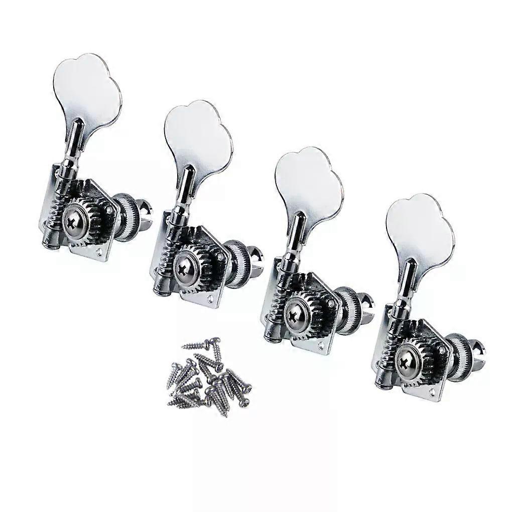 FLEOR 4pcs Vintage Open Bass Machine Head Tuners Guitar Tuning Pegs Keys for Bass 4 Strings Chrome /Black FLEOR 4pcs Vintage Open Bass Machine Head Tuners Guitar Tuning Pegs Keys for Bass 4 Strings, Chrome /Black Features: Set of 4PCS Bass tuning pegs for electric bass. Location:4R /4L for choose . Open style bass tuning pegs. Style:Half moon plum button. Heavy duty internal gear. with 4 ferrules and 16 screws. Material: Metal. Color: Chrome /Black choose. Size: Please check the size picture. Item's color might be different from the picture because of the aberration. Package Included: 4 x tuning pegs 4 x ferrules 16 x screws _x000D_