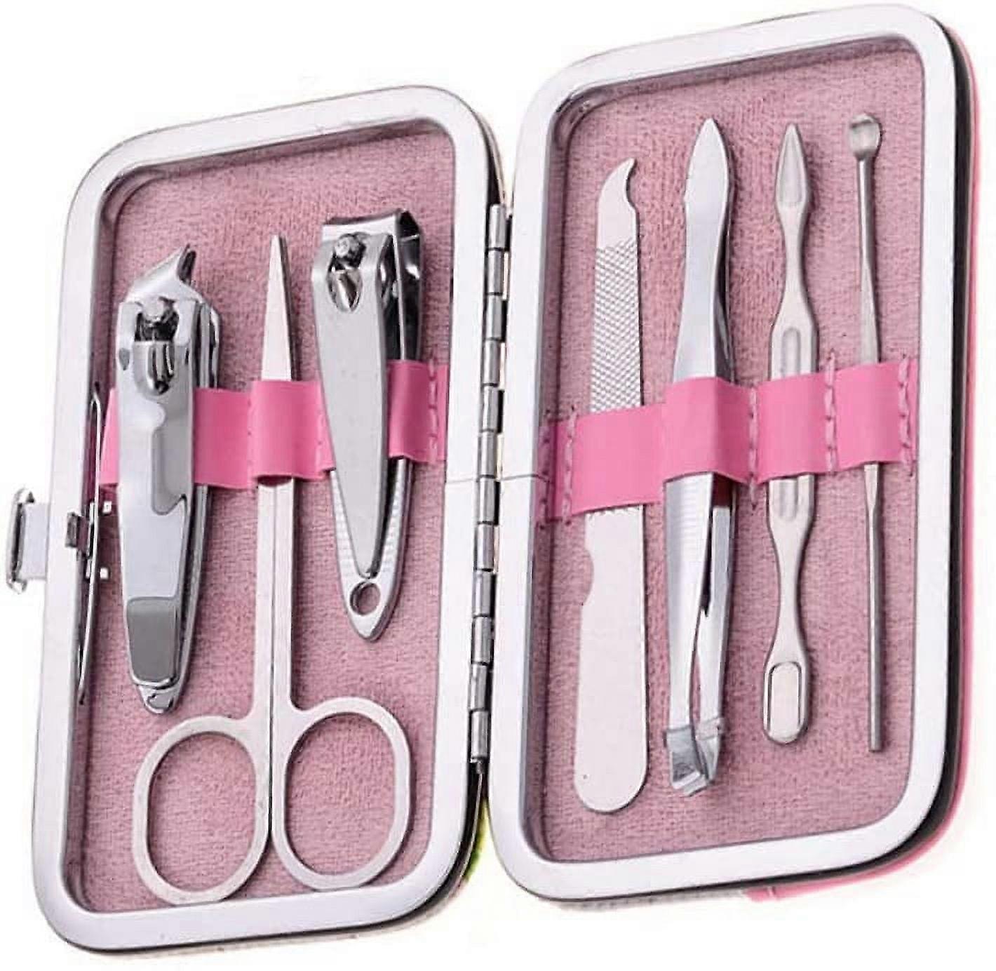 Simyoung Nail Clipper 7Pcs Set Nail Scissors Grooming Travel Case Tools Manicure Pedicure Kit Ear Pick Tweezers Nail File for Women 7 in 1