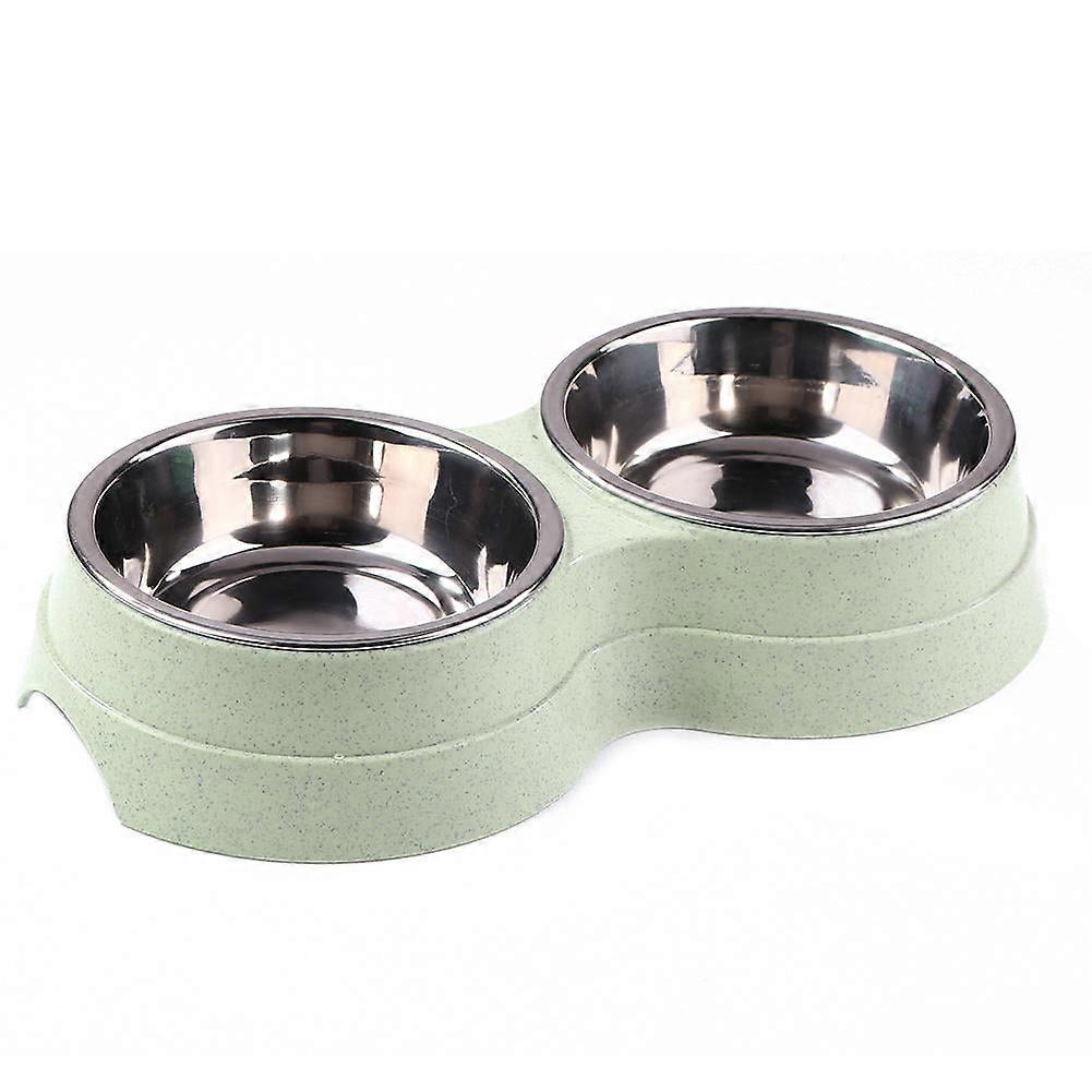Dog Double Bowl Puppy Food Water Feeder Stainless Steel Pets Drinking Dish Cat Puppy Food Water Dish (Green)