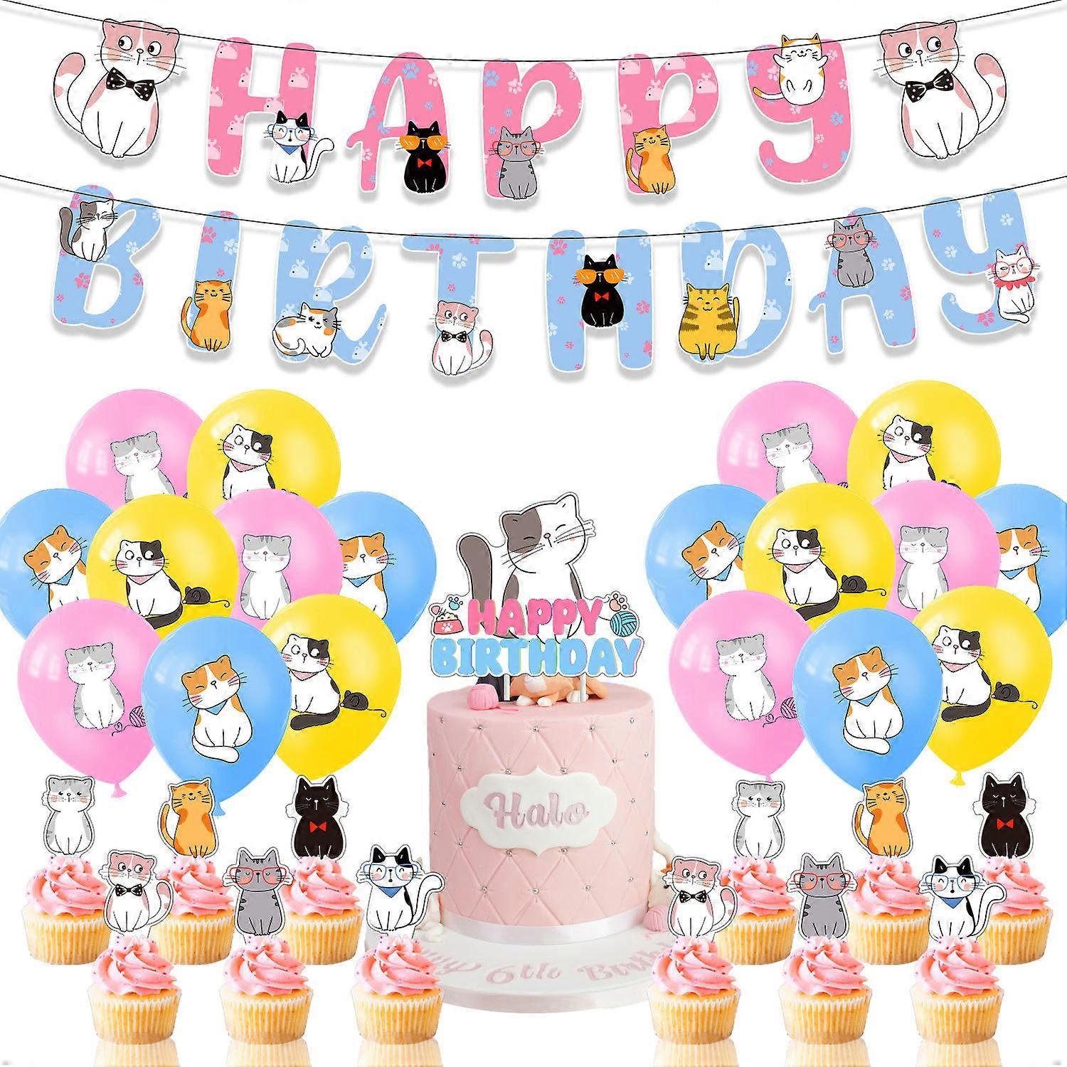 Cat Birthday Party Decorations Kit with Banner Cake Toppers Balloons Garland Party Supplies