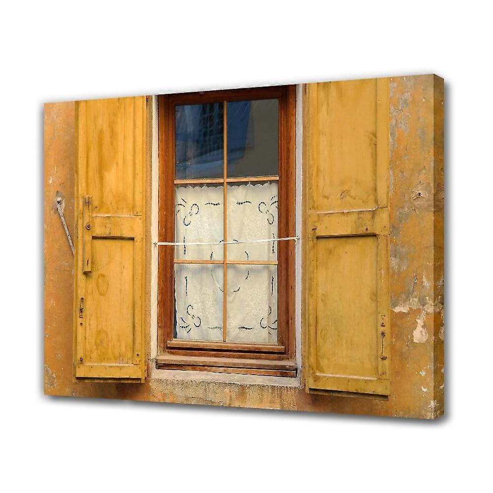 Window Yellow France Old Shutters Canvas Poster Bedroom Decor Sports Landscape Office Room Decor Gift,Frame-style,12x18inch(30x45cm)