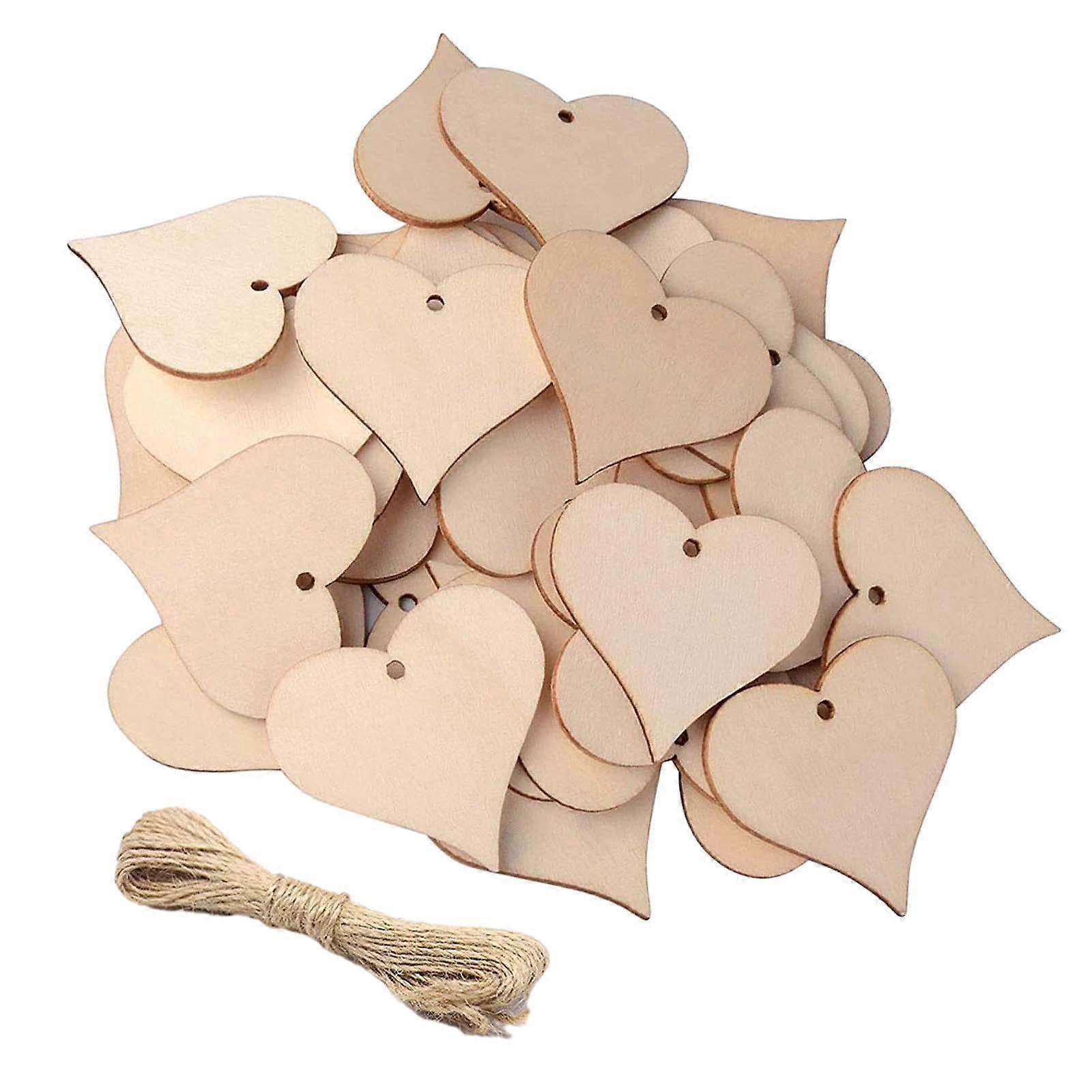Abbraccia 100 Pieces Party Favor Tags Pendants Ornaments Decorative with Hole Wooden Slices Unfinished Blank Wood Pieces for DIY Crafts Hearts