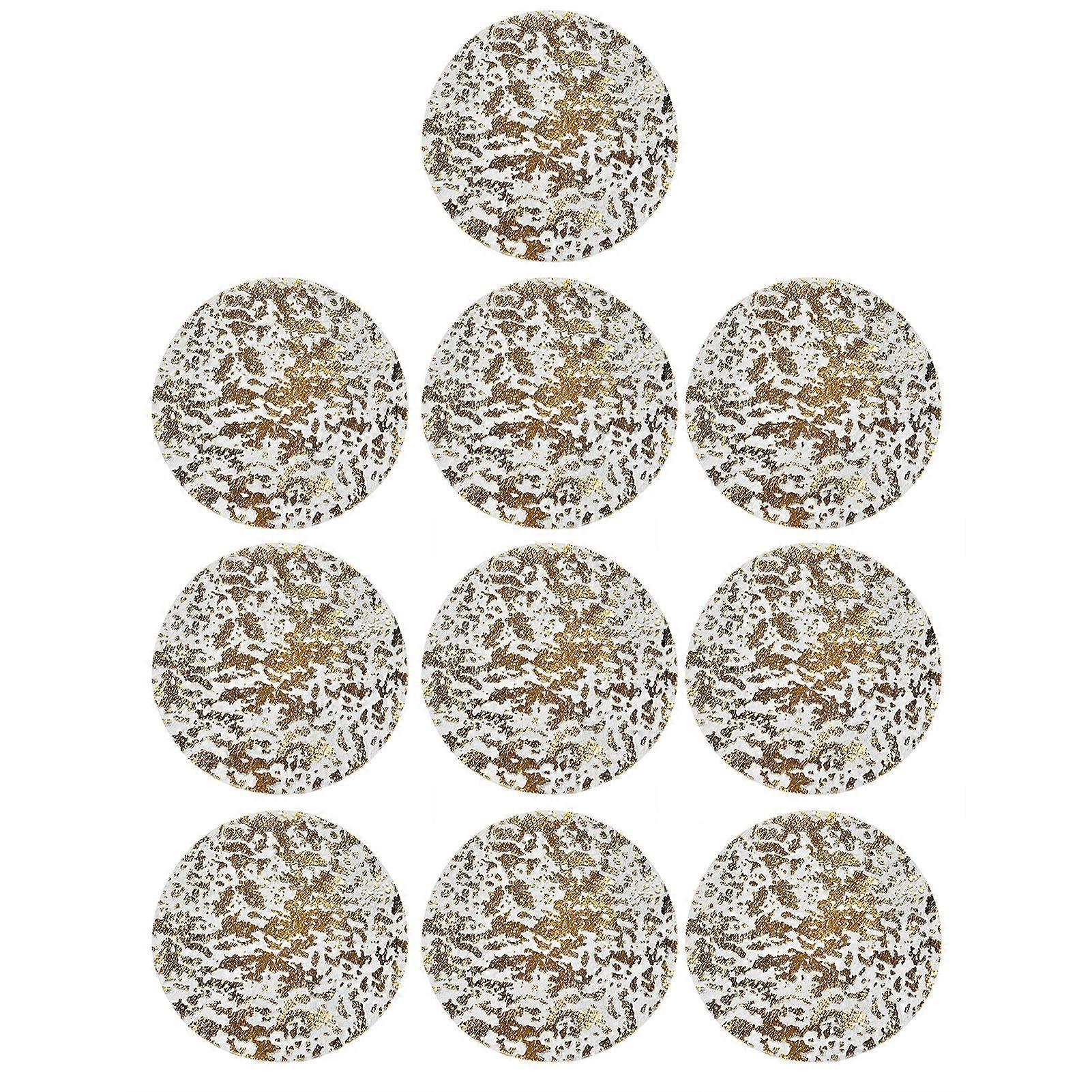 Description: Elevate your table decor with these stunning metallic gold round placemats. Featuring a unique foil mesh design, these gold placemats are sure to catch the eye of your guests. Perfect for parties or as elegant table decorations, these placemats come in a set of 10/20 for your convenience. Made of high quality polyester fiber, these disposable placemats are for weddings, baby showers, birthdays, and more. Create a festive atmosphere with these gold placemats and enjoy easy cleanup after the event. Add a touch of glamour to any occasion with these chic and practical gold placemats. Item Name: Placemat Material: Gold Foil Features: Non Slip, Heat Resistant, Reusable, Long Lasting Size Details: Diameter: 33cm/12.99" (Approx.) Notes: Due to the light and screen setting difference, the item's color may be slightly different from the pictures. Please allow slight dimension difference due to different manual measurement. Package Includes: Style 10Pcs: 10 x Placemats Or Style 20Pcs: 20 x Placemats Enjoy convenience and style with this set of 10/20 disposable placemats. Measuring 13 inches in diameter, these mesh pressed round placemats are crafted from material, offering both functionality and elegance for various events. Effortlessly enhance your table setting with these placemats, designed for one time use at parties or as elegant, repeatable decorations. The metallic gold foil mesh design adds a touch of glamour to any occasion, ensuring a memorable dining experience for guests. Elevate your table decor with these placemats, featuring a stunning foil mesh design. Transform any setting into a luxurious experience with this unique grid pattern that captivates attention effortlessly. Create a festive with these placemats suitable for weddings, baby showers, anniversaries, birthdays, Thanksgiving, Christmas, and more. Whether in home kitchens, restaurants, or hotels, these placemats add charm and sophistication to any environment. Simplify cleanup after events with these placemats that save and energy. Focus on the important aspects of your party without worrying about post event cleaning.
