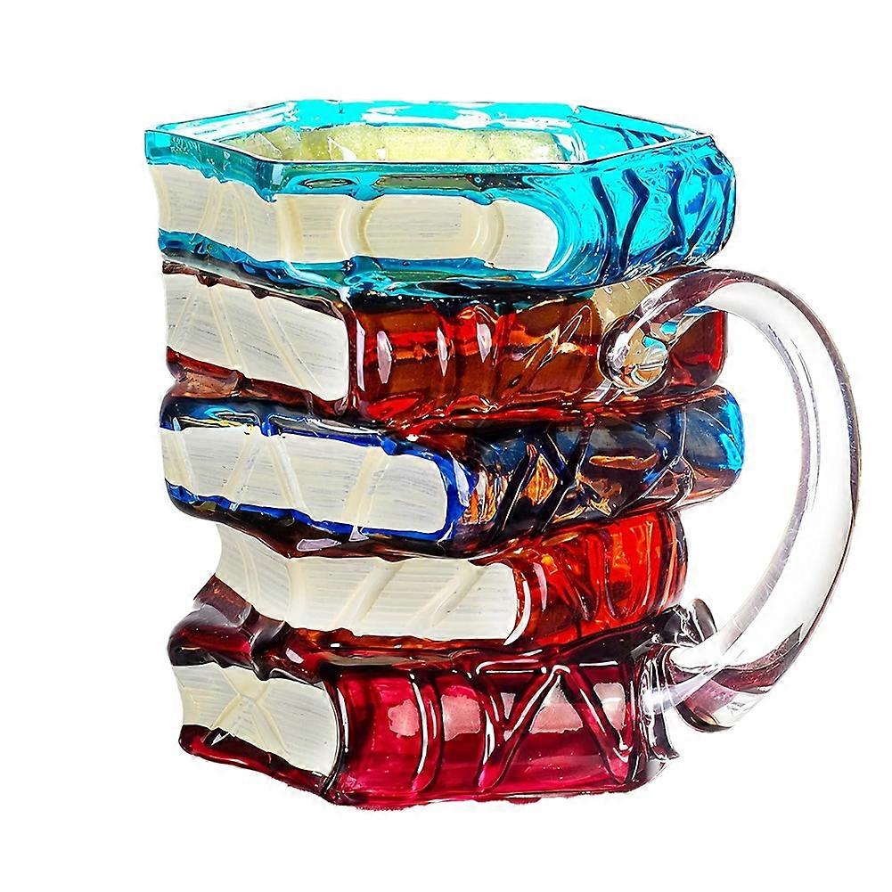 Painted Book Glass Coffee Mugs,14oz Espresso Cappuccino Latte Tea Cups with Handle,Novelty Mugs for Readers,Bookworm