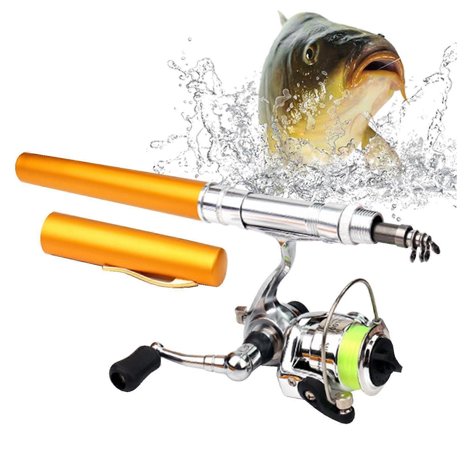 Pen Fishing Rod Pocket Miniature Telescopic Travel Rod, Lightweight Crappie Rod For Freshwater And Saltwater, Gold