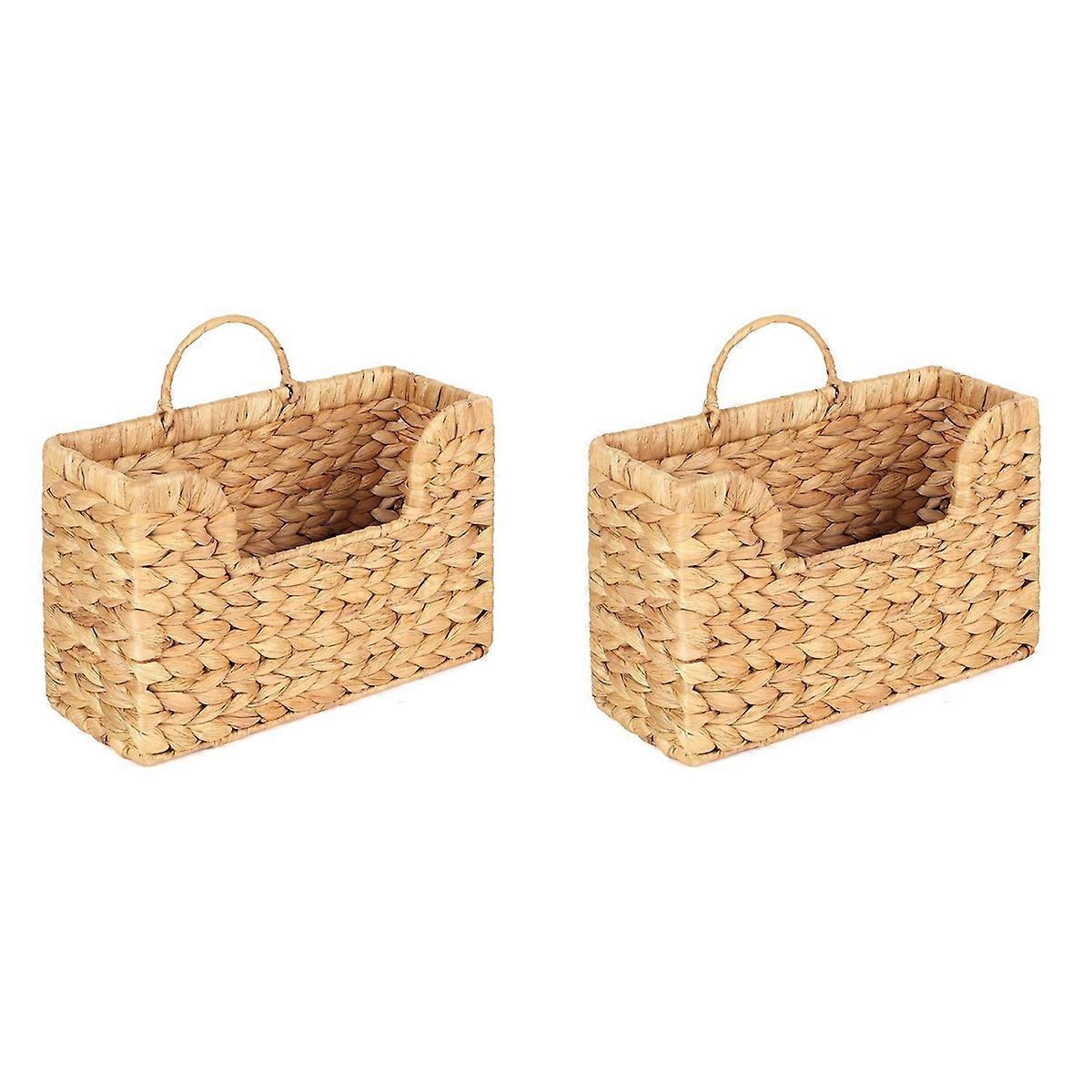 2X Handwoven Water Hyacinth Wall Magazine Holder - Hanging Organizer for Mail, Newspapers & Magazine
