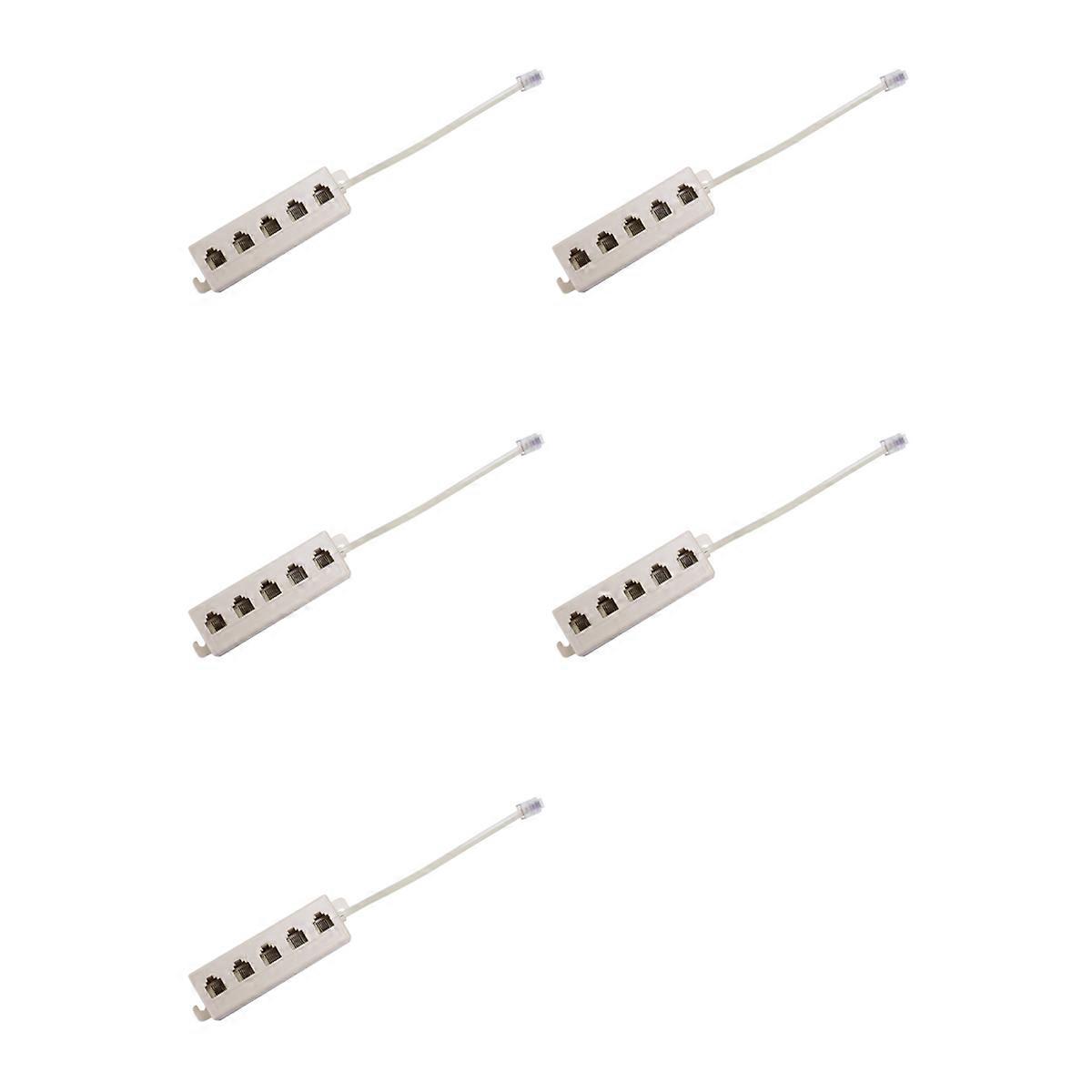 5X Beige RJ11 6P4C Male Plug to 5 Ports 6P2C Female Socket Phone Line Splitter Adapter