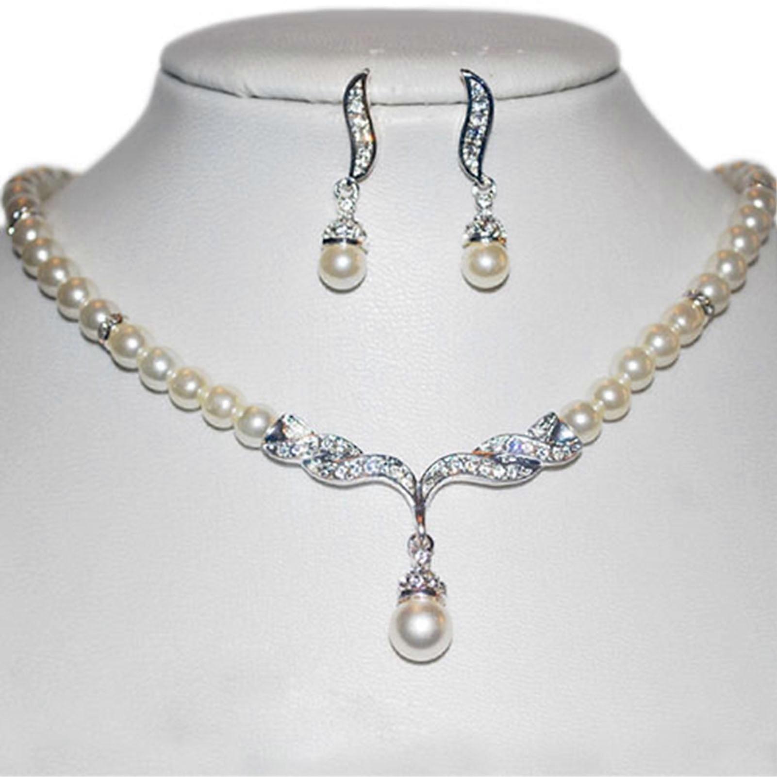 Besufy Women Jewelry Set Bridal Wedding Angel Wings Faux Pearls Necklace Studs Earrings
