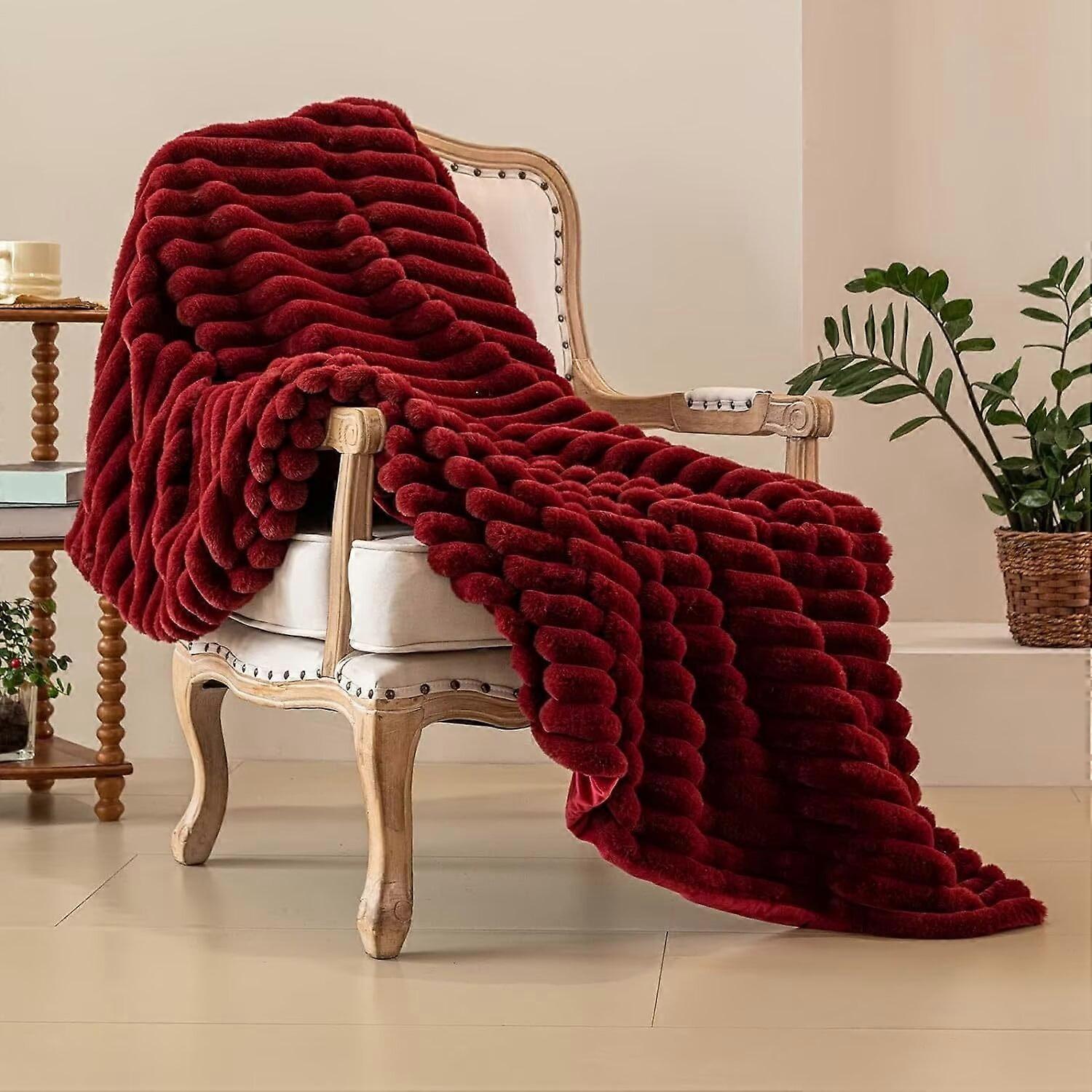 Luxury Double Sided Faux Fur Throw Blanket, Soft Fluffy Plush Cozy Warm for Couch Bed Sofa - Ivory 50" x 63" (Without Pillows)