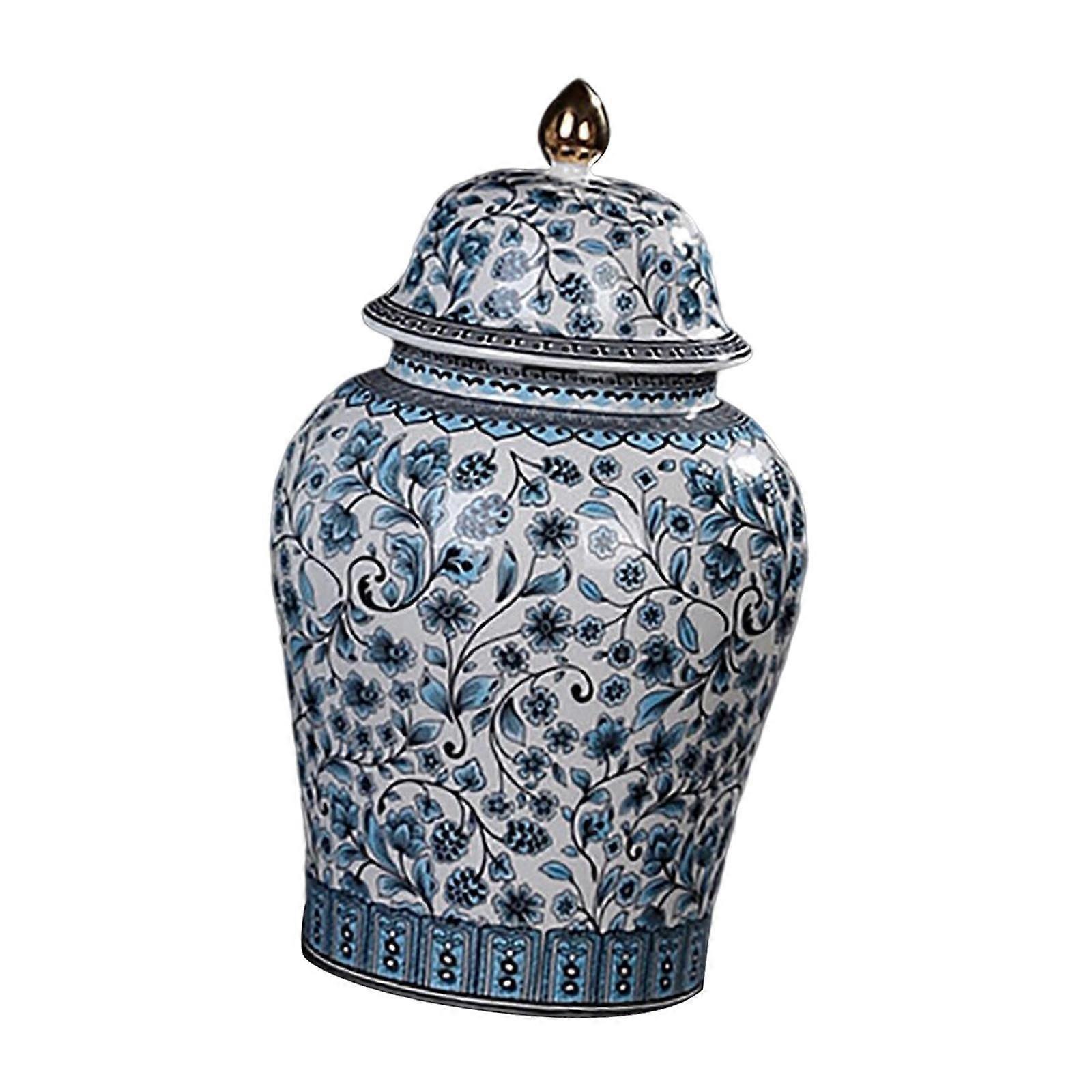 Chinese Style Porcelain Vase Ginger Jar Temple Jar, Home Piece Glazed Hand Painted Oriental Style Multi Purpose Decorative , S 12x20.5cm