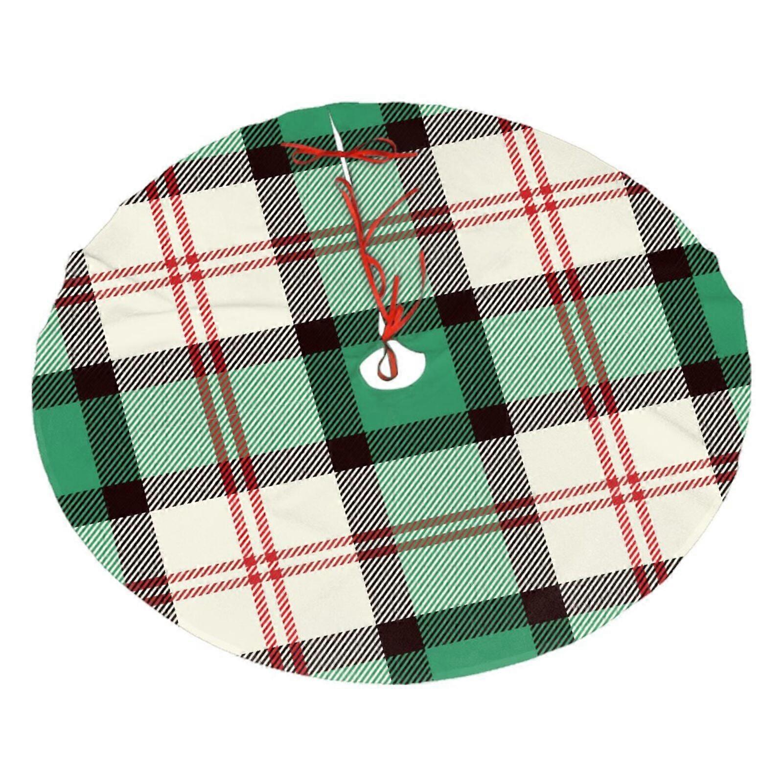 Green Plaid Tartan Christmas Tree Skirt, Soft And Funny Merry Christmas Tree Collar Farmhouse Xmas Holiday Decoration 36"