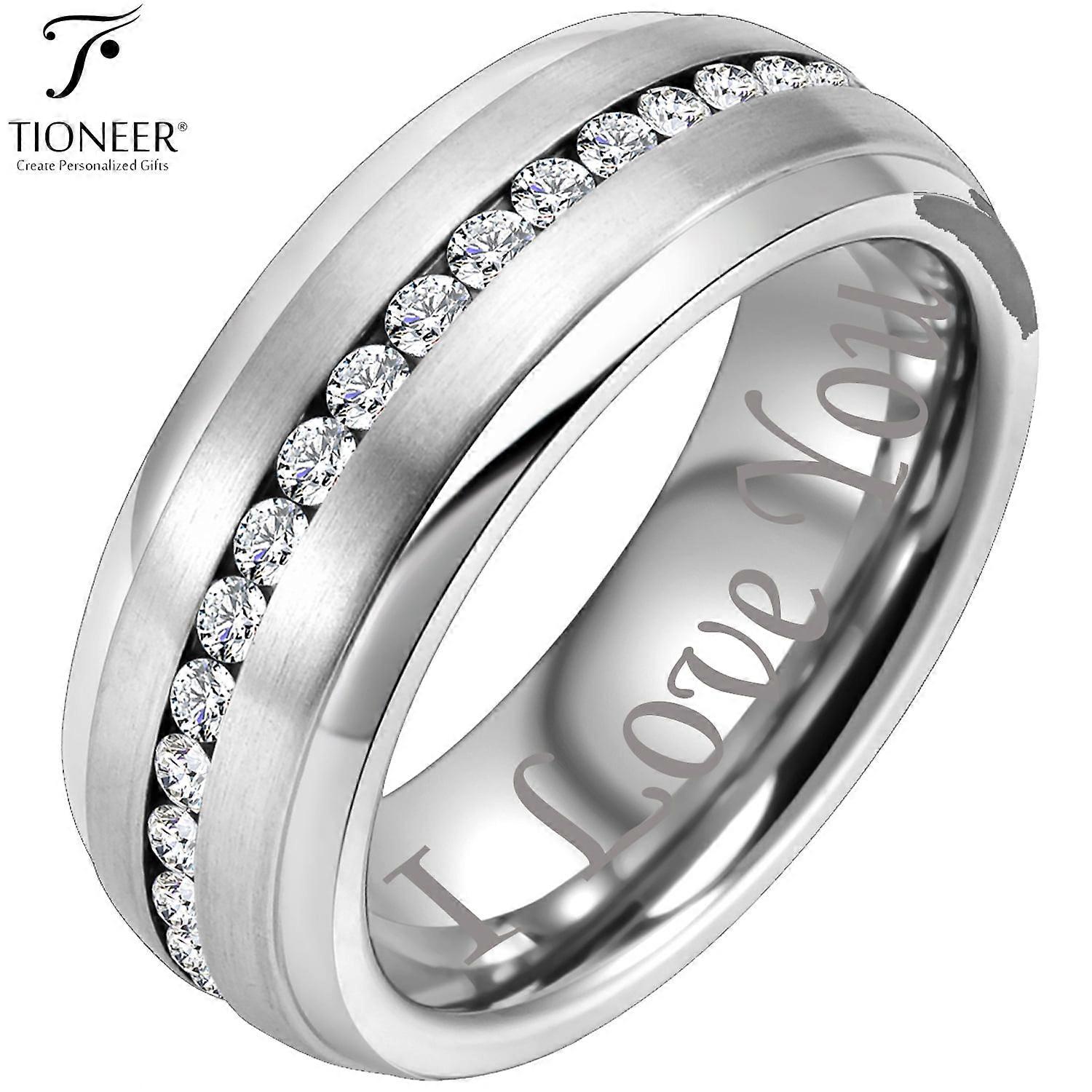 Tioneer Tungsten Carbide Wedding Band White Cubic Zirconia Style Edges in Silver Black Ring 8mm