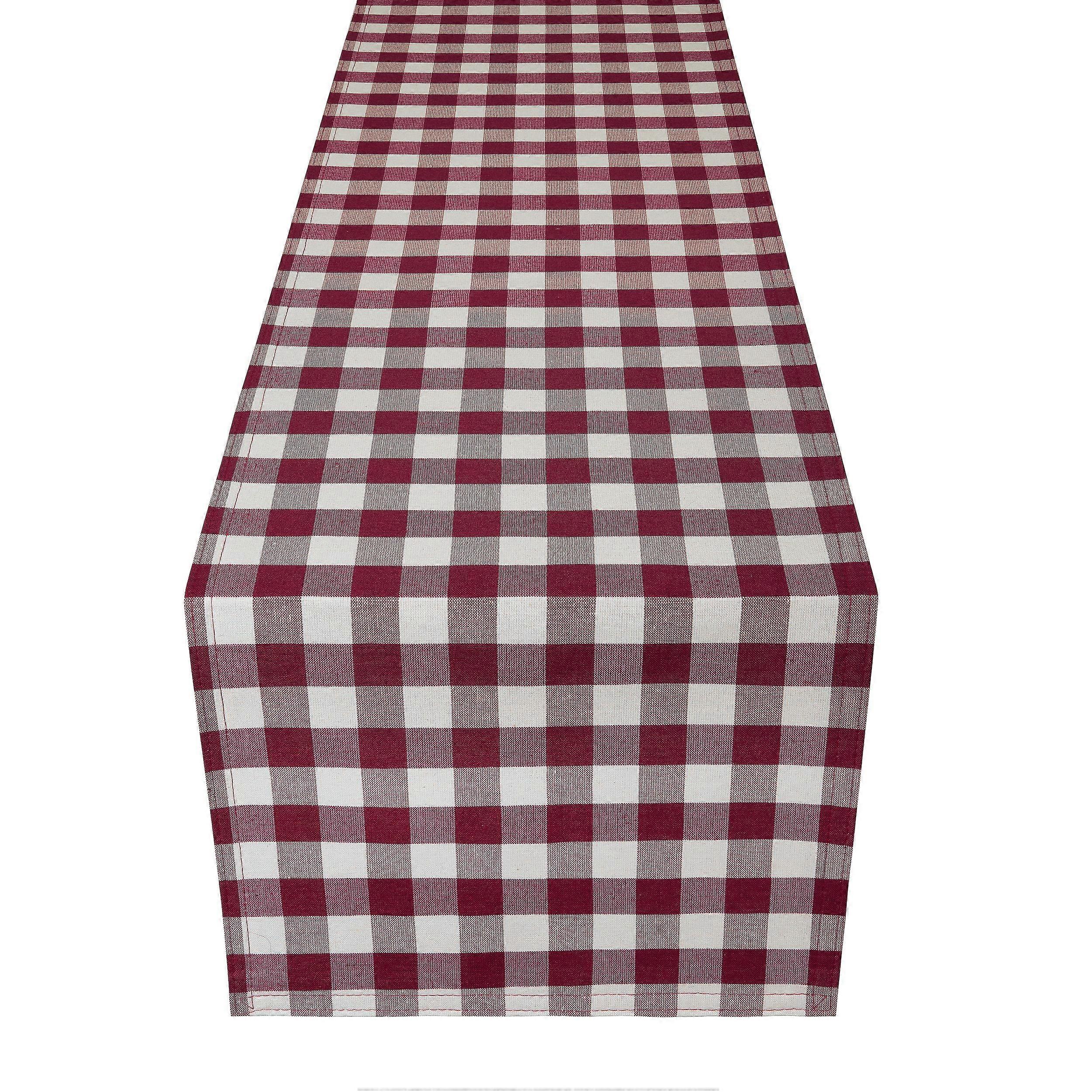 Buffalo Check Plaid Table Runner - Burgundy - 13 in x 48 in