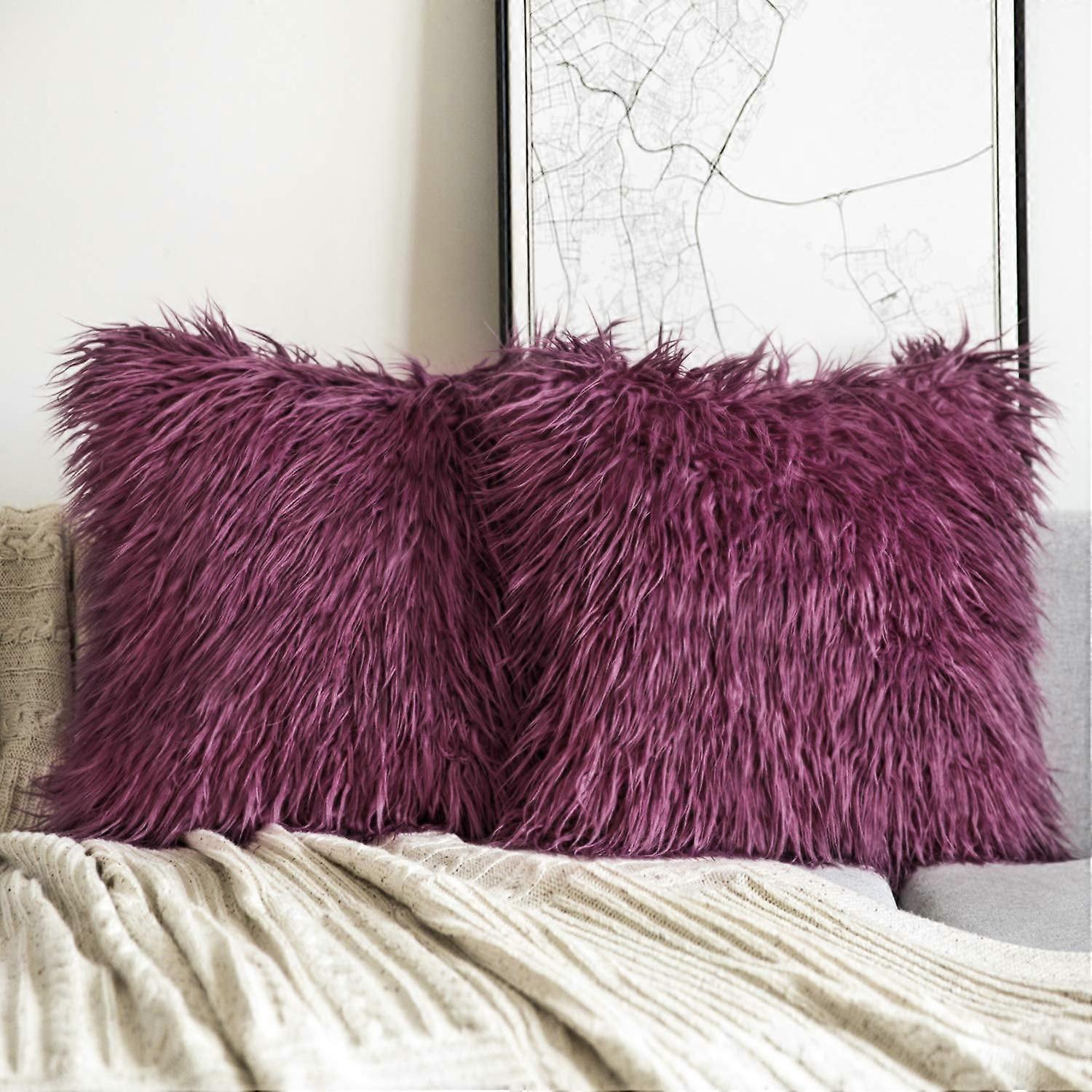 Phantoscope Merino Style Faux Fur Series Decorative Throw Pillow Cover, 18" x 18", Purple, 2 Pack