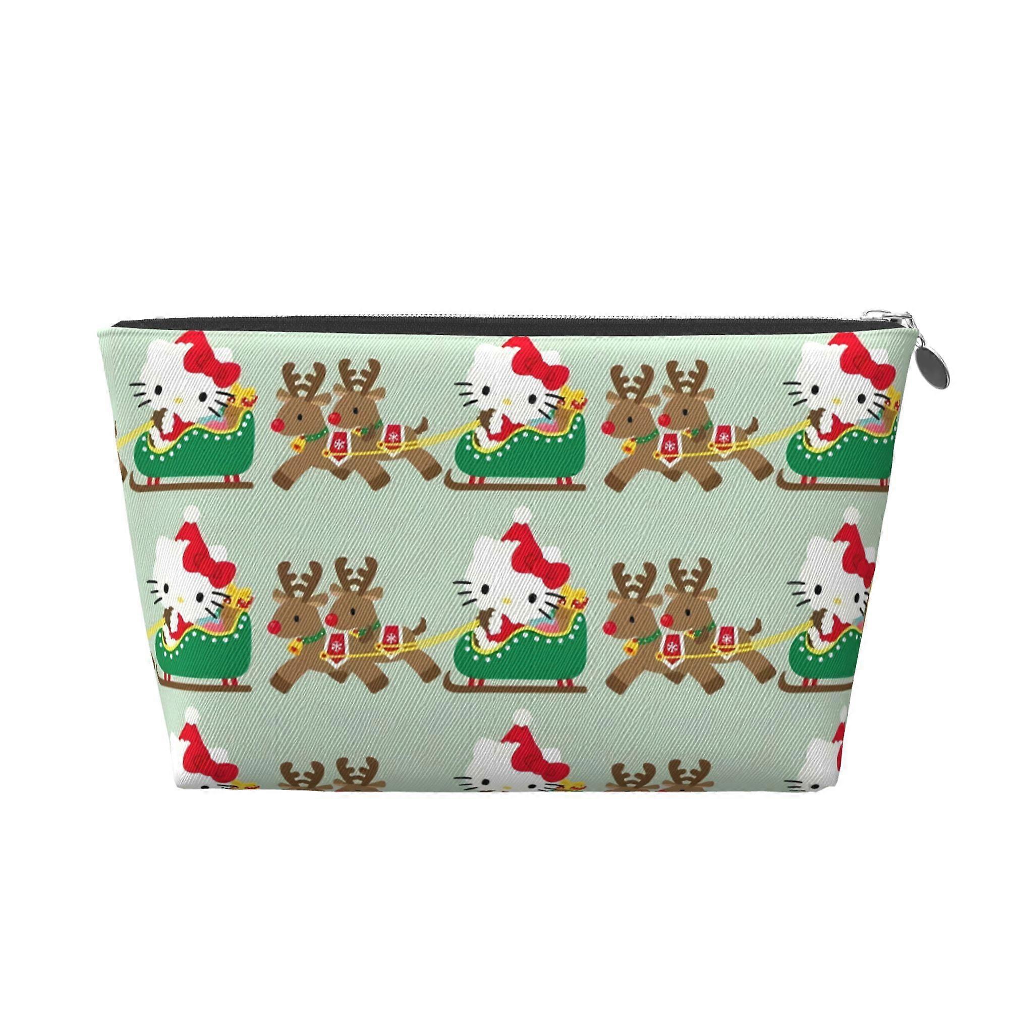 Hello Kitty Christmas Print Makeup Bag, PVC Leather with Silver Zipper, Multi-Function Cosmetic & Travel Toiletry Organizer