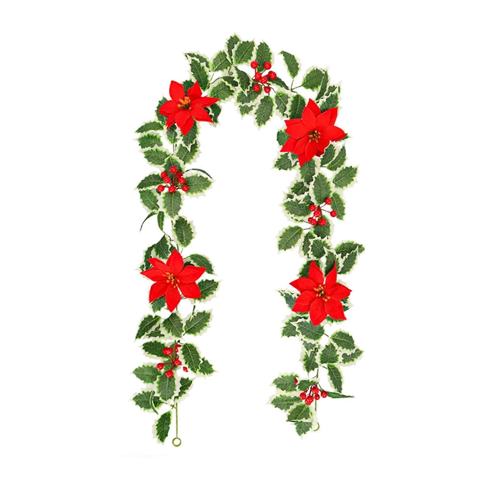 SLYNSHome Christmas Garland - 68.6" Rattan & Artificial Poinsettia, Hanging Vine for Home, Tree, Fireplace (68.6 inch)