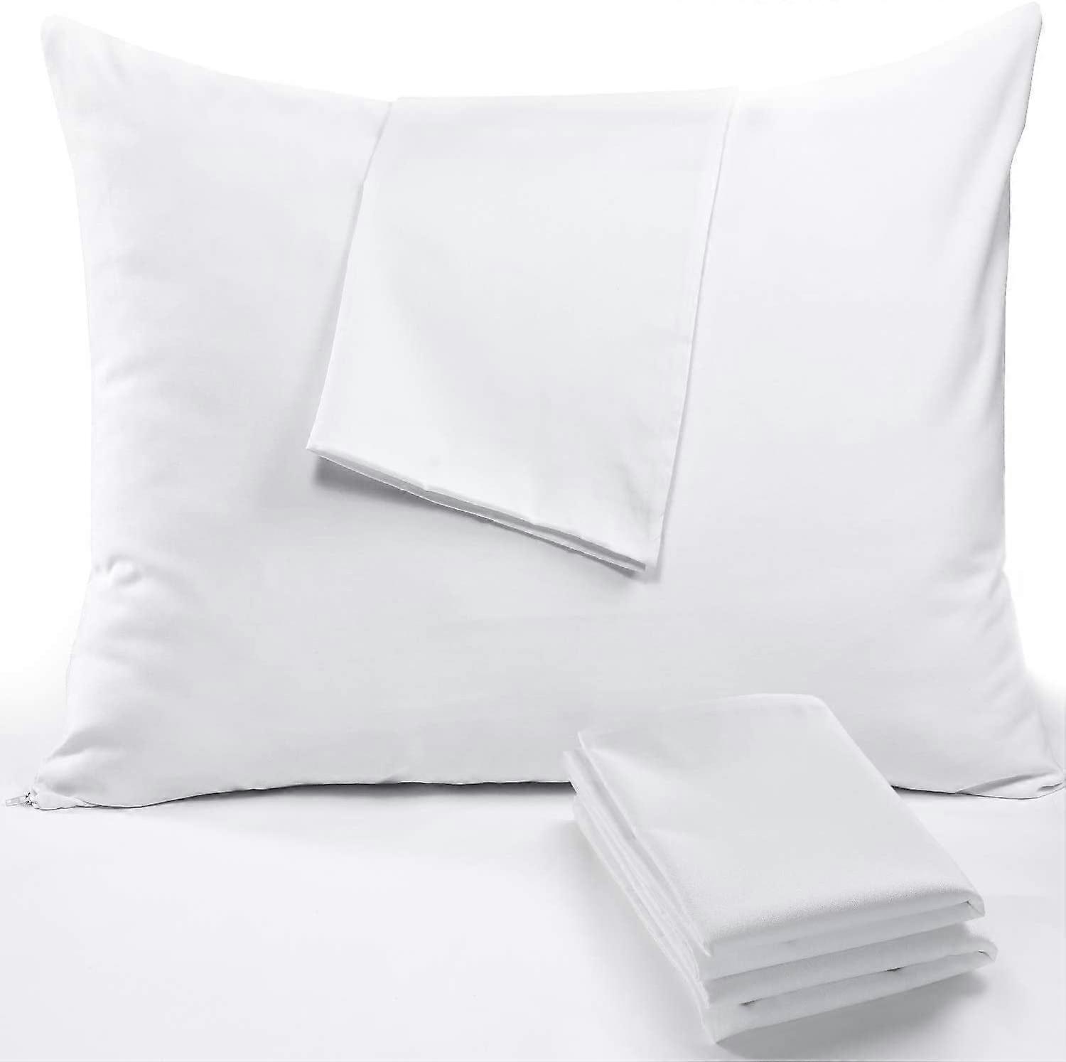 4 Pack Pillow Protectors Standard 20x26 Inches Lab Certified Ultra Treated 100% Cotton Non Crinkle Quiet Breathable Zipper Covers Cases White