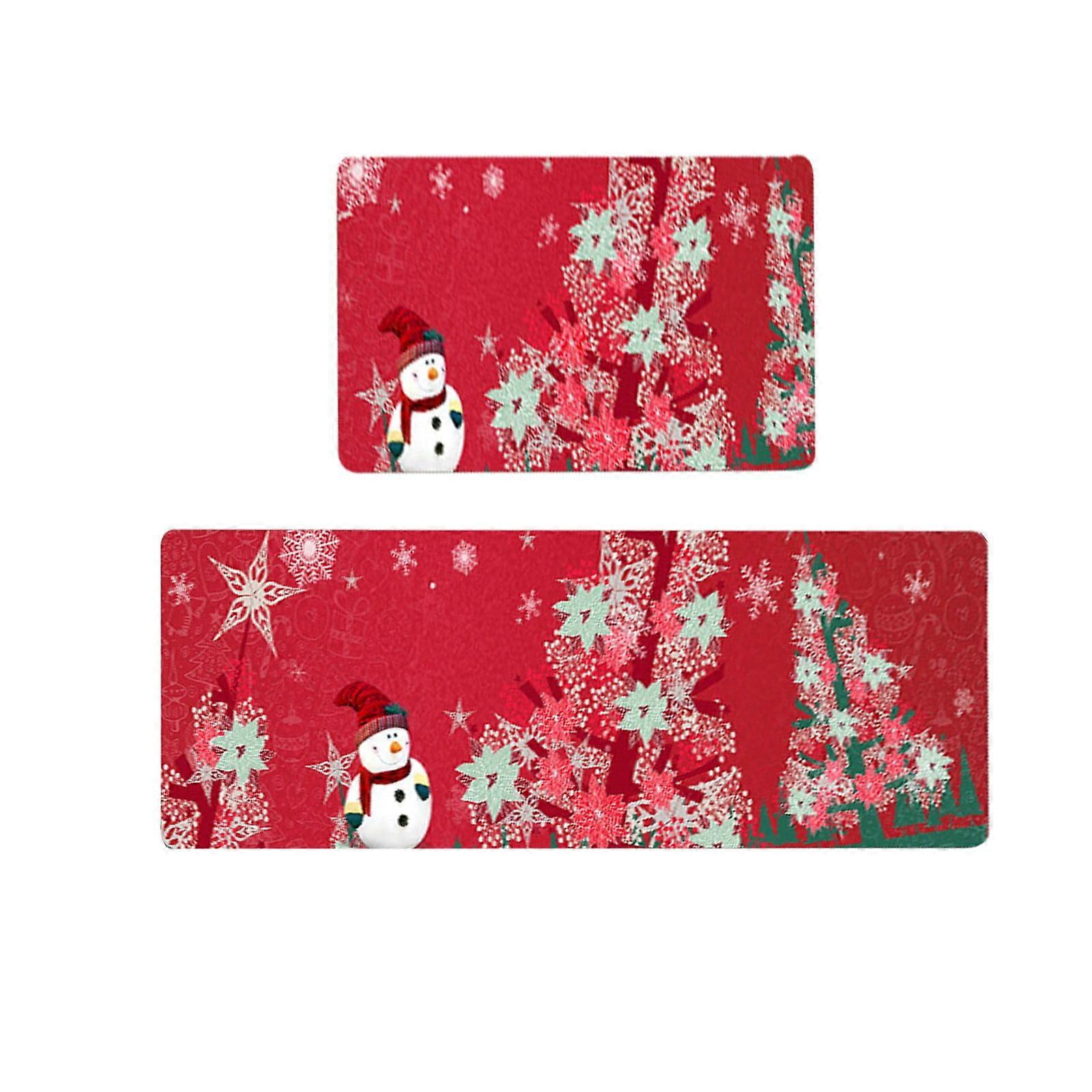 Merry Christmas Carpet Red & Green Xmas Tree Area Rug Snowflake Bells Floor Mat for Kids Living Room Bedroom