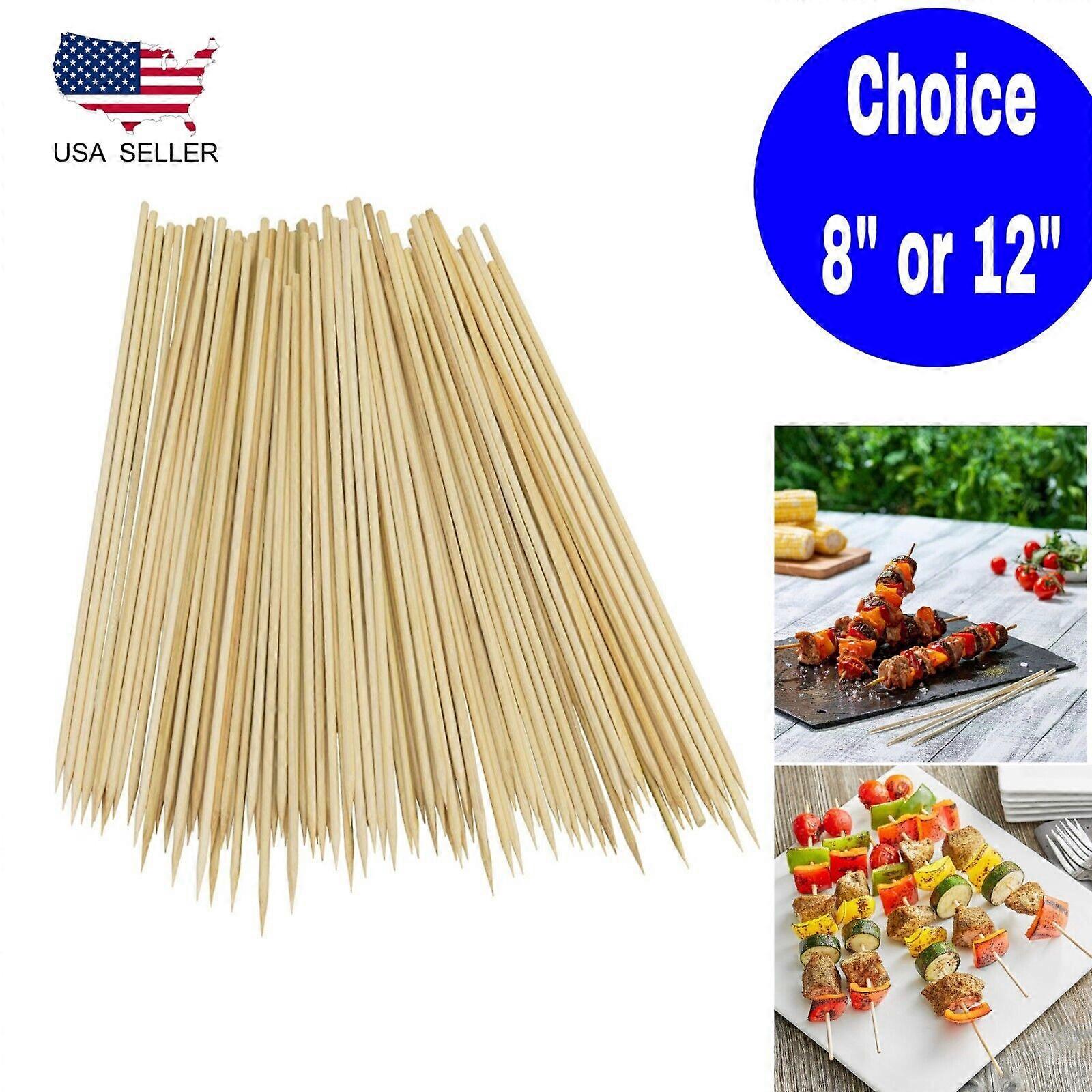 100 pcs Bamboo Skewer Grill Appetizer Fruit Picks BBQ Skewers Round 8'' or 12 ''