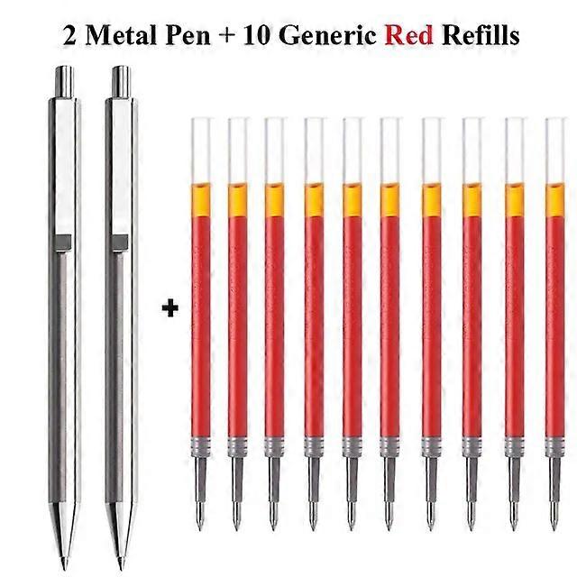 M&G Stainless Steel Metal Retractable Gel Pens, 0.5mm Fine Point Black ink Ballpoint Signature Pen with Replaceable Blue Refills 2Pen 10Red Refills