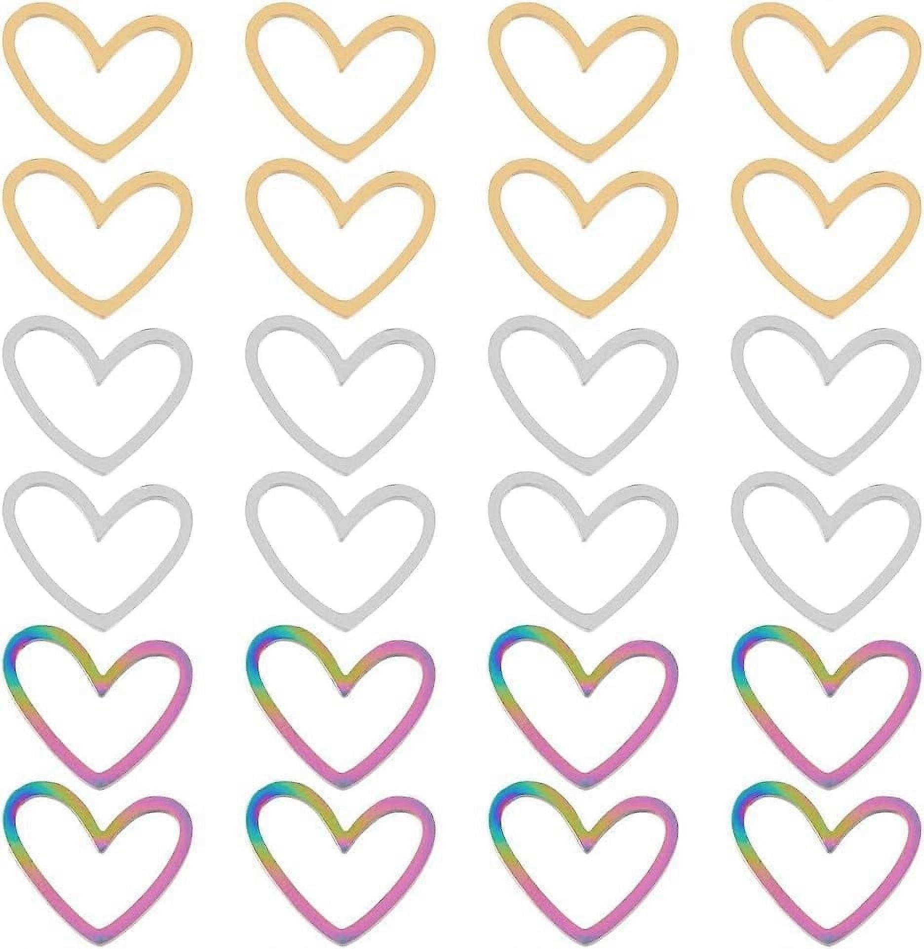 20Pcs 3 Colors Heart Connector Rings Stainless Steel Linking Rings Asymmetrical Heart Connector Charms Small Frames Connectors Charms Metal Jewelry Connector Links for DIY Crafts 3 Colors: Asymmetrical heart stainless steel linking rings featuring a laser-cut design in 3 captivating colors, gold, rainbow and metal color. These connectors add a chic and colorful touch to your DIY jewelry creations. Abundant Quantity: Unleash your creativity with 24Pcs of small 10.5mm asymmetrical heart-shaped linking rings. Each heart is 13mm wide and 1mm thick, offering a delightful assortment for your crafting endeavors. Premium Material: Crafted from high-quality 201 stainless steel, these linking rings ensure durability and a long-lasting finish. The asymmetrical heart charm adds a touch of sophistication to your jewelry creations, ensuring a premium and timeless look. Versatile Crafting Possibilities: Use these heart-shaped linking rings to connect jewelry pieces or create unique designs. Whether you're crafting bracelets, necklaces, or earrings, the small size and lightweight nature make them suitable for various DIY projects. Thoughtful Gifts: Elevate your gift-giving with irregulate heart linking rings. Perfect for DIY enthusiasts, these connectors add a unique touch to your handmade gifts. Turn every creation into a personalized and meaningful present, making them ideal for thoughtful and heartfelt DIY gifts.