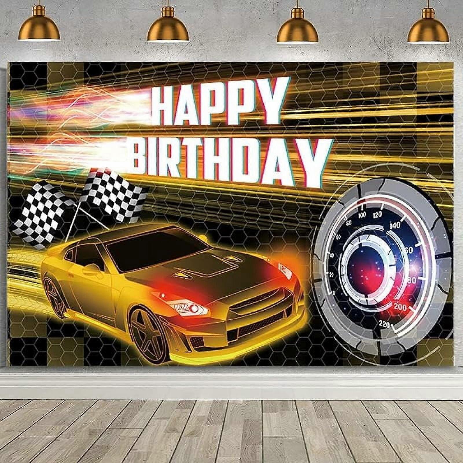 Custom 7x5ft Car Racing Happy Birthday Backdrop, Red Race Car Party Photo Background for Boys, compatible with racing theme decorations